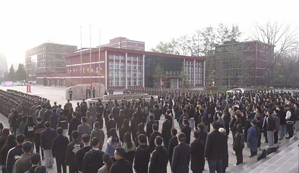 上午7时许,预备役全体官兵、部分师生自发集会,整齐列队。伴随着庄严的国歌旋律,五星红旗冉冉升起,他们以最庄严的方式深沉缅怀,致敬英魂。