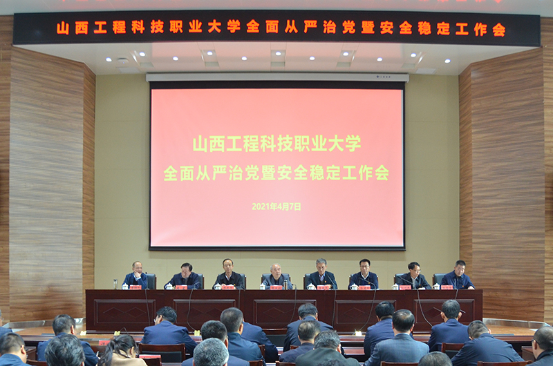 4月7日下午,我校在行政楼一层报告厅召开2021年全面从严治党暨安全稳定工作会。校领导张主社、李英杰、乔忠华、郭建平、成宏、赵随民、李锦元出席会议,各部门负责人、各二级教学单位以及附属学校的党政负责人参加会议。会议由校党委副书记李英杰主持。