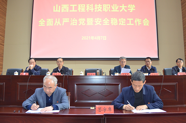 张主社与各部门负责人及二级教学单位、附属学校的党政负责人签署了党风廉政建设目标责任书和安全稳定责任书。