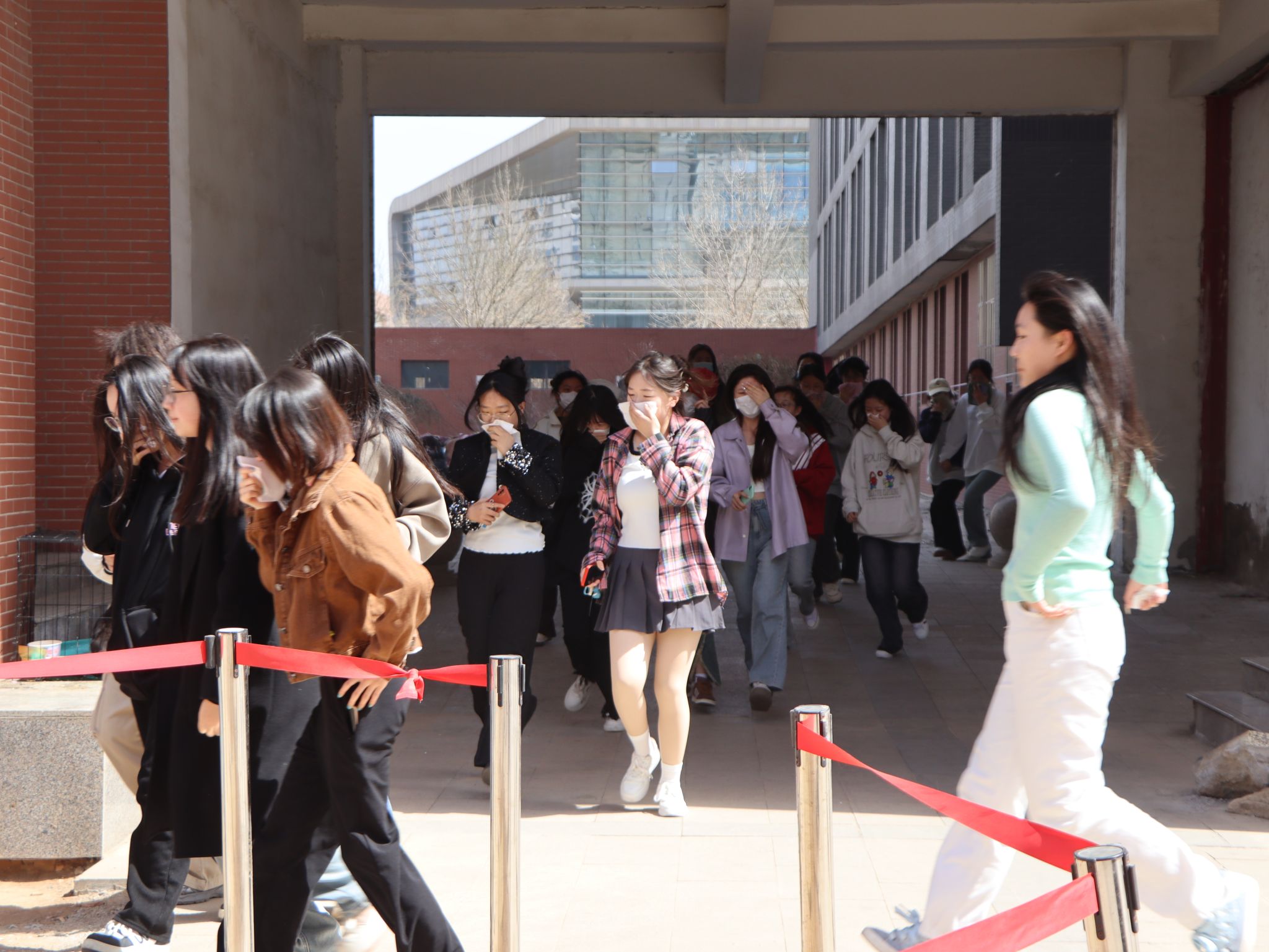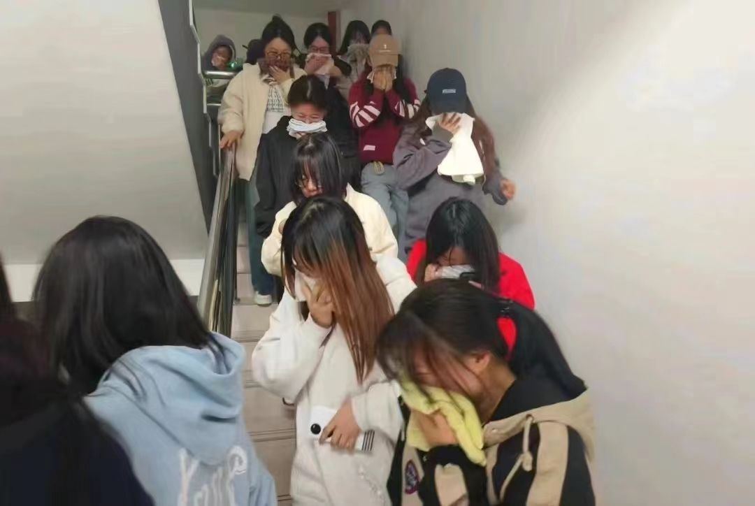 逃生演练践于行,防患未然筑安全。3月22日,伴随着一阵急促的警报声,我校2024年学生消防逃生疏散演练拉开序幕。在周密谋划、还原现场、制定预案、明确职责的前提下,12时50分,随着演练指令的发出,12号学生公寓预设火情发生,烟雾在楼道内迅速蔓延,在辅导员、公寓管理员和学生志愿者的指挥下,学生们迅速按照演练方案规定逃生路线撤离;撤离过程中,大家严格根据所学消防知识和逃生要求,用毛巾、手帕等物品捂住口鼻,弯腰前行,全体学生用时2分39秒成功安全撤离。