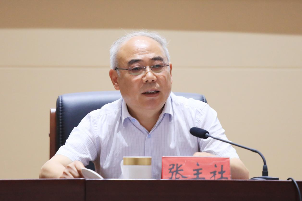 校党委书记张主社围绕推进学校高质量发展,加快学科专业群建设步伐,加强师资队伍建设,深化教学改革发展等方面,深入阐述了推进二级教学机构整合融合的重要意义,详细说明了设置23个二级教学机构的组织机构与人员配置情况,并对二级教学机构假期重点工作进行安排部署。