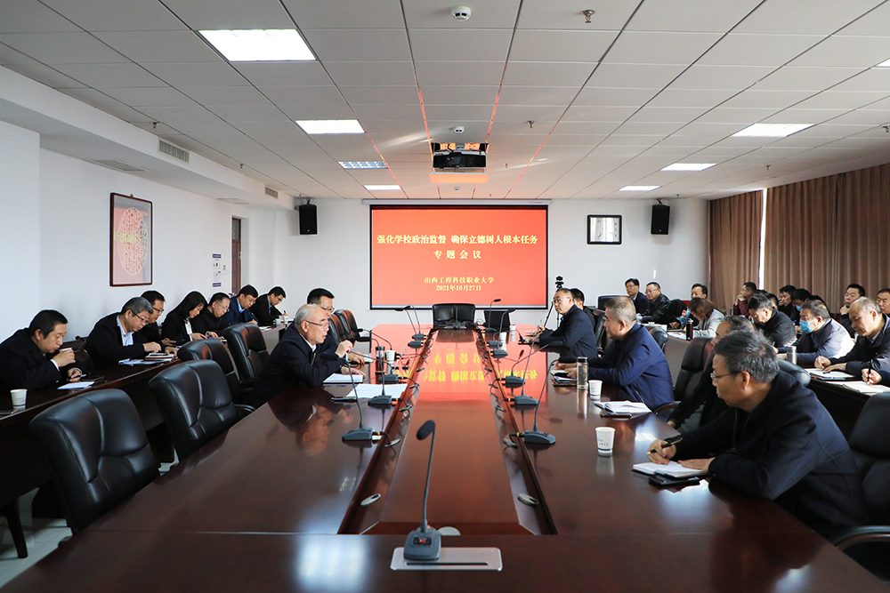 10月28日,我校在文华西校区行政楼902会议召开“强化学校政治监督 确保立德树人根本任务”专题会议。校党委书记张主社出席会议并作讲话,纪委书记郭建平主持会议。相关部门负责人,各二级学院党委负责人、纪检委员参加会议。