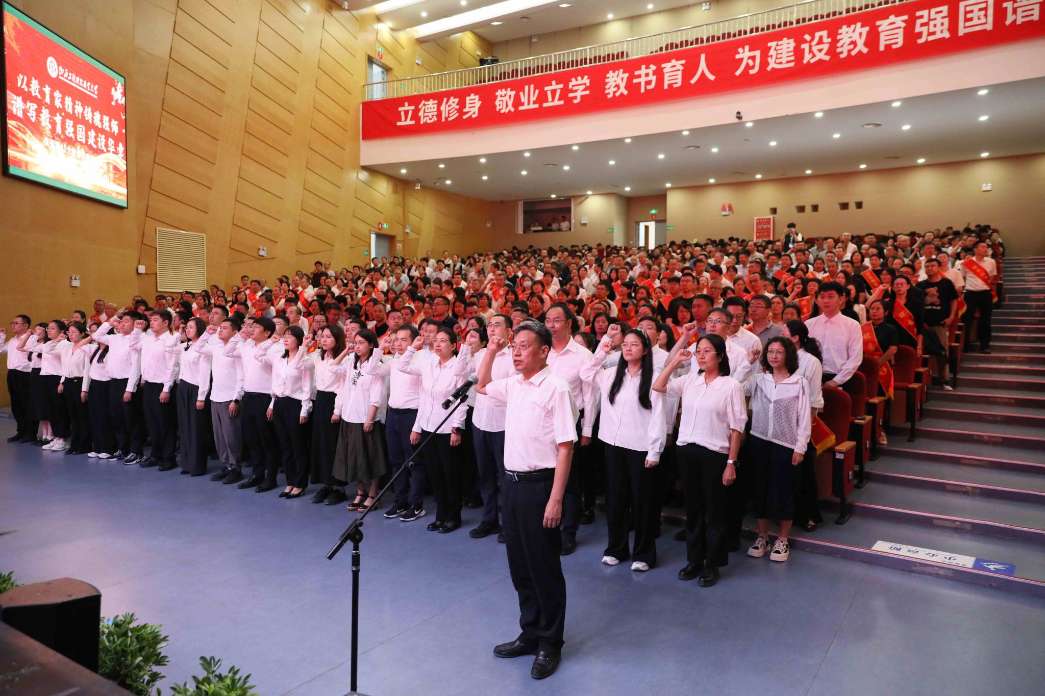 大会举行了新入职教师宣誓仪式。潘晋孝领誓,校党委领导班子成员,新入职教师和与会全体教师重温了人民教师誓词,承诺将全身心投入到教育事业中,为学校各项事业高质量发展贡献力量。