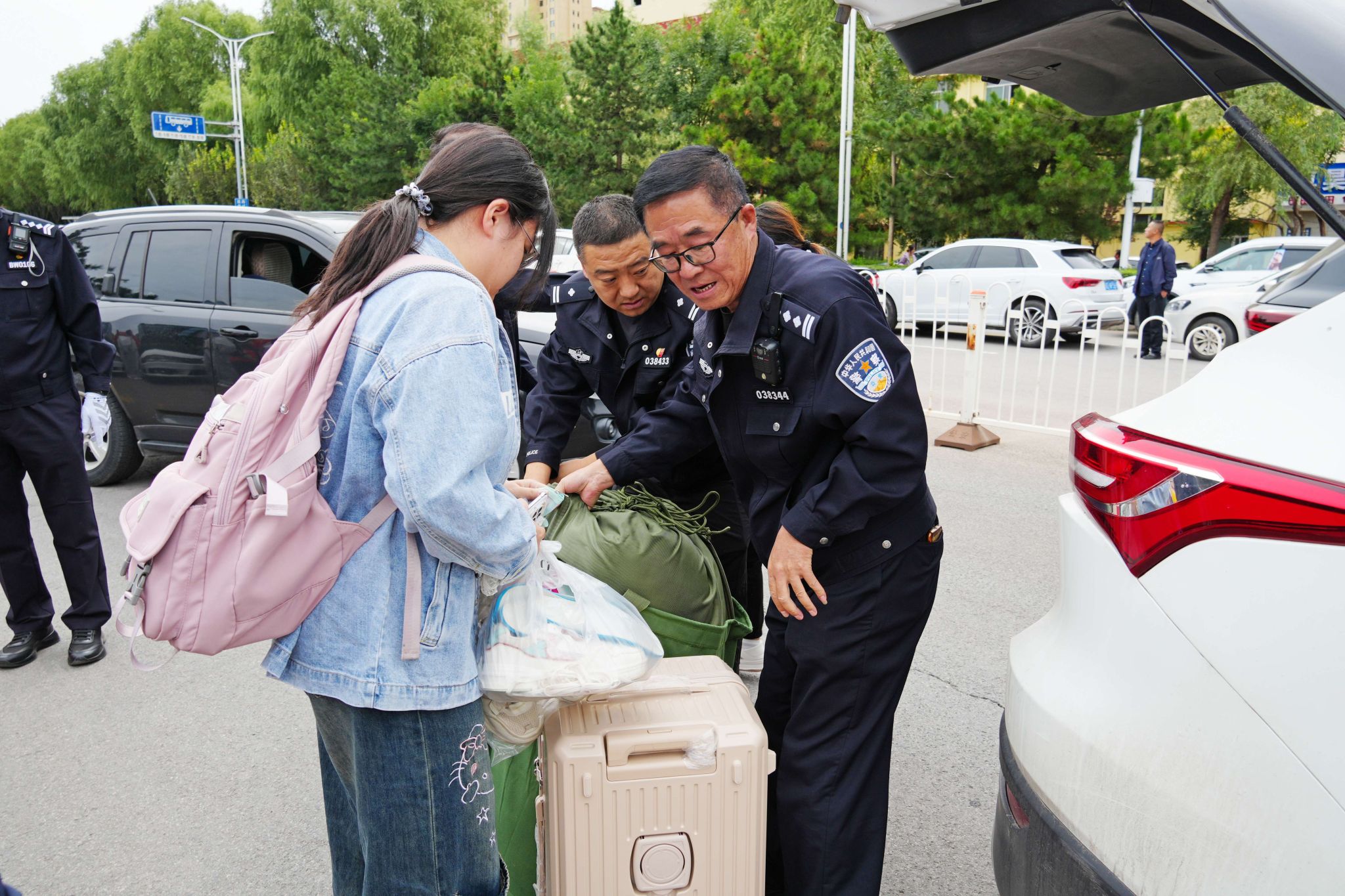 在迎新报到的两天时间里,驻地民警、交警、城市管理执法人员和学校安保人员在校园周边的车流中疏导交通、维持秩序,保障新生和家长安全出入校园。他们默默守护着工科大这座充满活力的校园,为新生和家长的安全保驾护航。