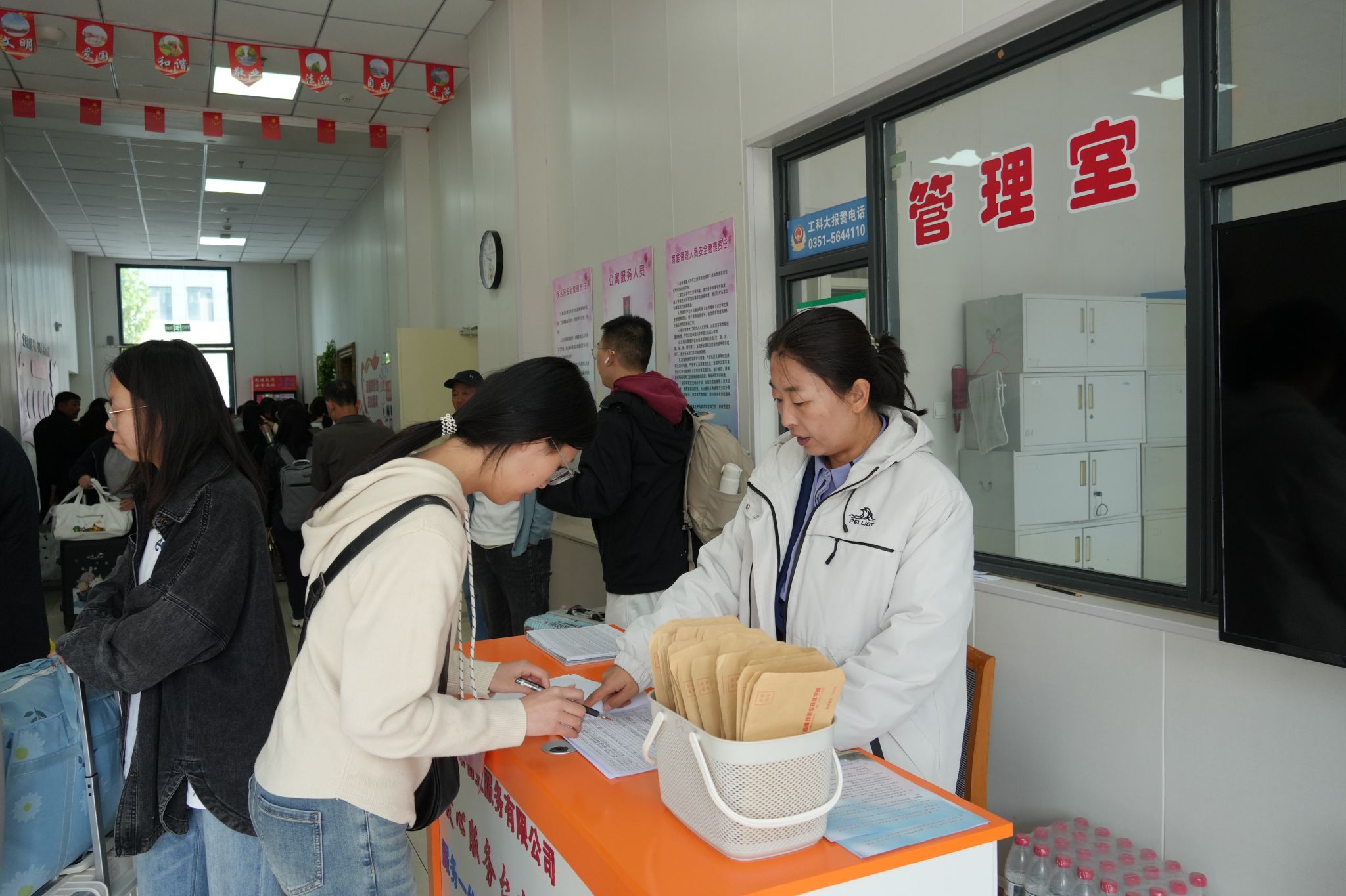 迎新期间,学校还推出了多项暖心举措:在太原南站和晋中高铁站提供接站服务,并配备站点志愿者和随车志愿者,帮助新生顺利登上开往学校的校车;提供校园迎新专用摆渡车,接送新生及家长,帮忙运送行李,准确找到自己的学生公寓。