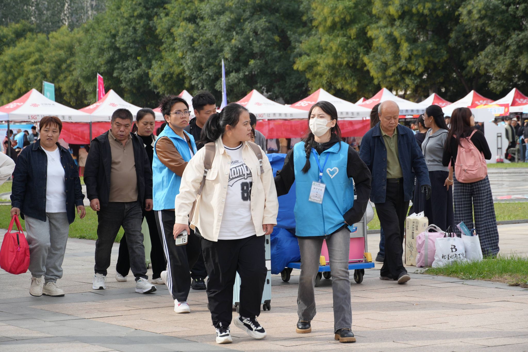 带着希望与憧憬,新生们进入校园便感受到来自工科大的活力与热情,身着志愿者马甲的学长学姐们,热心引导每一位新生来到报到处。“热烈欢迎2025级新同学及家长”“你好,新同学!”……校园中随处可见各式各样的标语和拱门,一排排迎新服务点在技能广场两侧有序展开,在红色校徽的映衬下,气氛热烈而祥和。