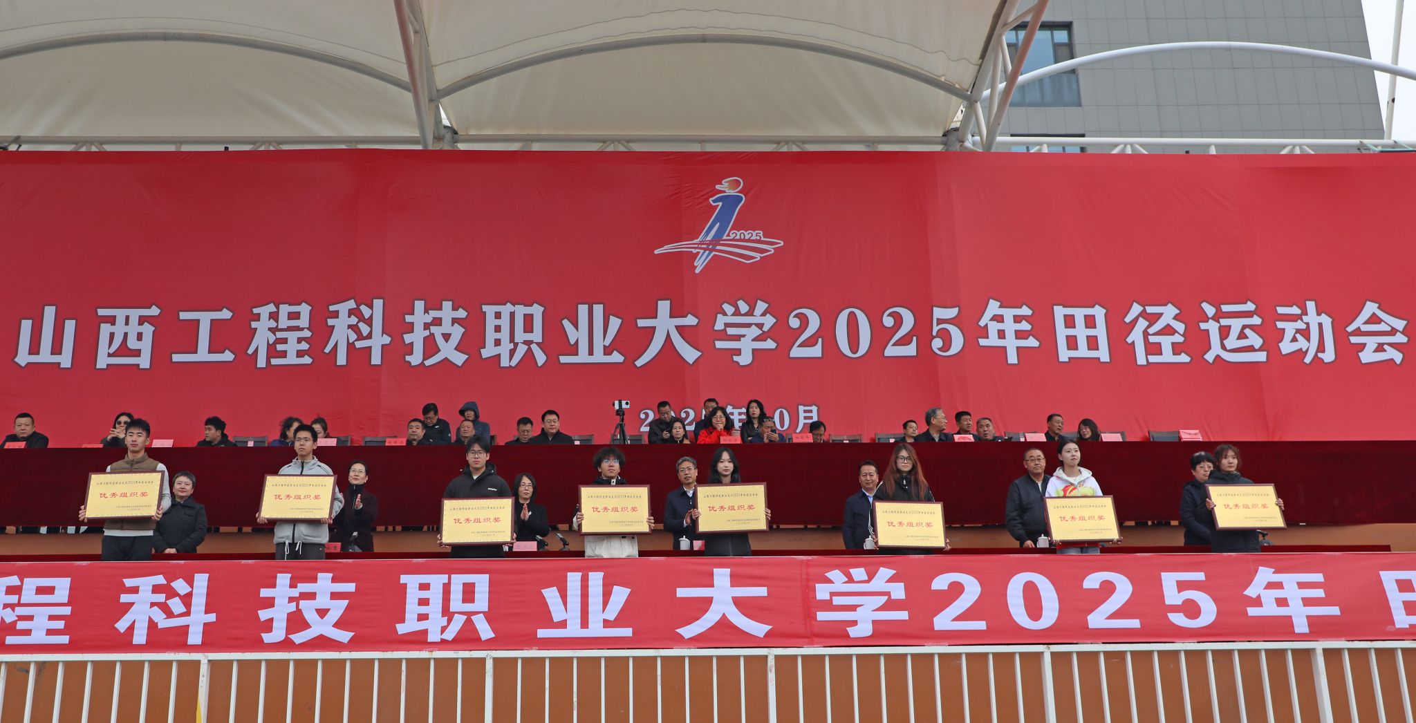 10月17日至18日,我校2025年田径运动会在西运动场举办。校党委书记秦华伟宣布运动会开幕,校党委副书记、校长潘晋孝致开幕辞,校党委副书记梁晓军致闭幕辞,纪委书记郭建平为比赛发令,副校长李锦元出席,副校长张秀芝主持开闭幕式。学校各部门、各二级学院党政负责人,各二级学院师生代表、运动会裁判员、运动员、学校国旗护卫队队员参加。
