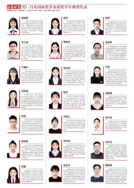 国家奖学金是由中央政府出资设立用来奖励特别优秀的学生,激励学生勤奋学习、努力进取,德、智、体、美、劳全面发展,是当前高等学校学生能够获得的荣誉等级最高的国家级奖学金。经过严格选拔和评审,全省1120名优秀本专科学生荣获2020—2021学年度国家奖学金。《山西晚报》刊登出的100名学生,是本专科生国家奖学金获奖学生的优秀代表。他们爱党爱国、信念坚定,严谨求学、勇于创新,诚信友善、热心公益,矢志成为勇攀学术高峰的不懈追求者、社会主义核心价值观的忠实践行者、中国特色社会主义事业的可靠接班人。