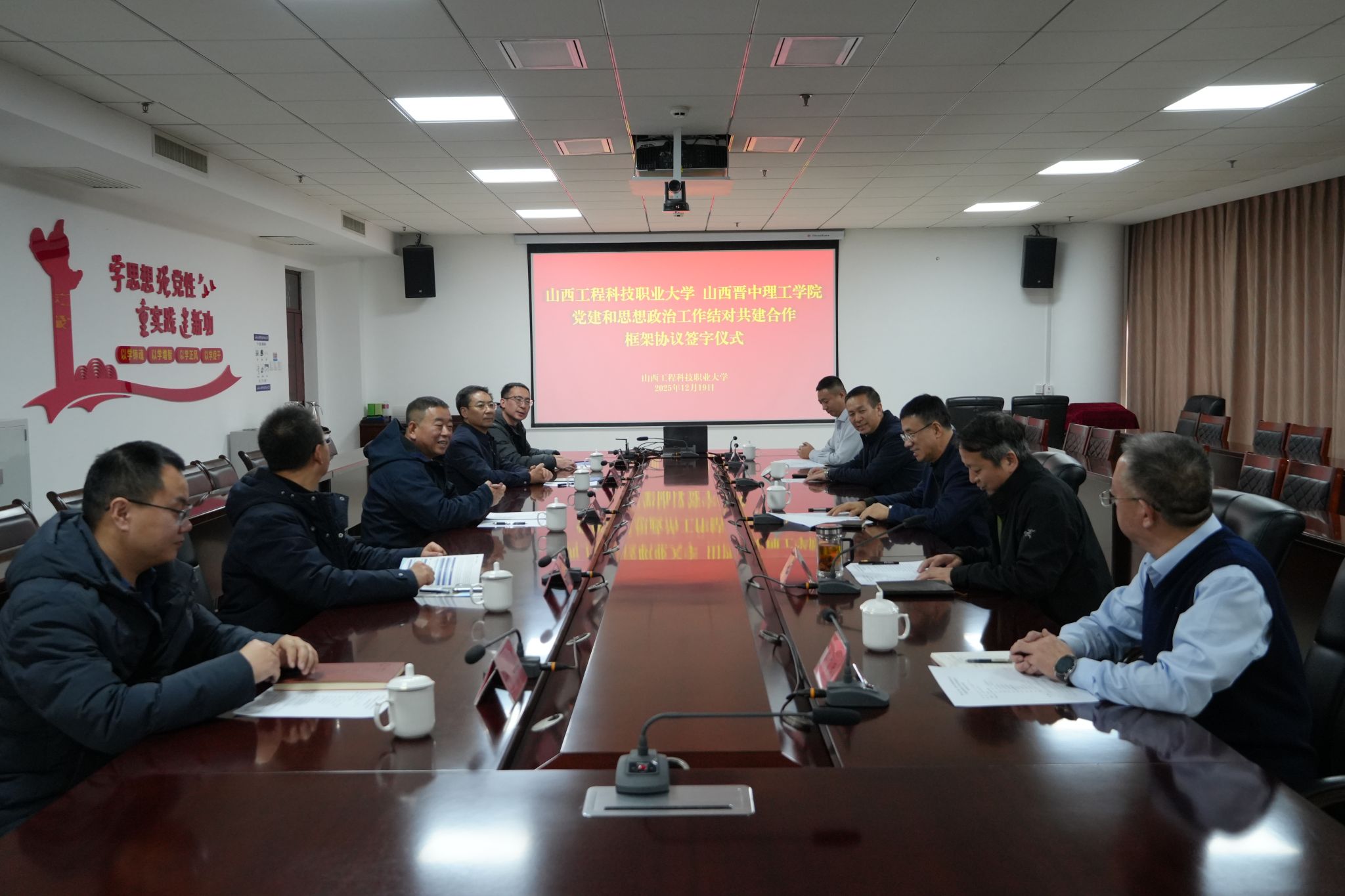 12月19日,为扎实推进公办高校带动民办高校党建和思想政治工作质量提升,我校与山西晋中理工学院在学校行政1号楼902会议室签署党建和思想政治工作结对共建合作框架协议。山西晋中理工学院党委书记、省政府辅导专员霍世平,党委副书记、纪委书记刘继国,党委委员、副院长贾健鹏;我校党委书记秦华伟出席签约仪式。校党委副书记梁晓军主持签约仪式。