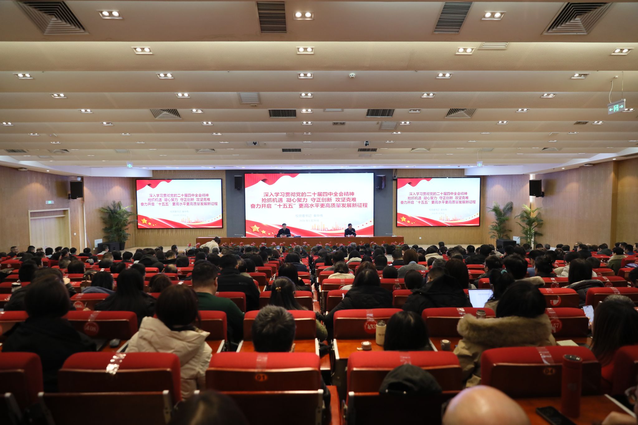 1月20日,我校在东区图书馆报告厅召开党的二十届四中全会精神宣讲会。校党委书记秦华伟以“深入学习贯彻党的二十届四中全会精神,抢抓机遇 凝心聚力 守正创新 攻坚克难,奋力开启“十五五”更高水平更高质量发展新征程”为主题作宣讲。全体校领导出席宣讲会。会议由校党委副书记梁晓军主持。