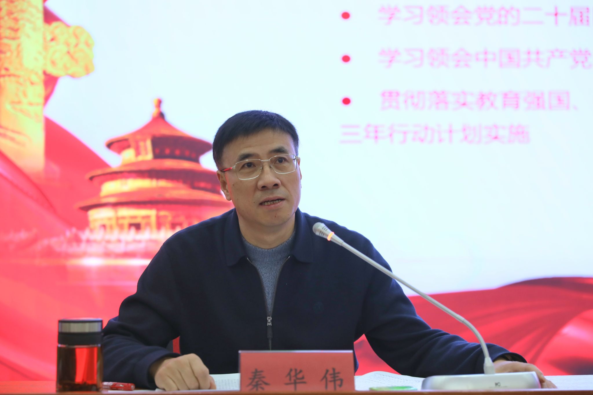 秦华伟强调,党建引领是根本,要加强党对学校工作的全面领导,把党的领导全面贯彻到教学、科研、管理、服务等各项工作中。坚定政治方向,严明政治纪律,确保党中央及省委决策部署不折不扣落实。坚持用党的创新理论武装师生,牢牢把握正确政治方向,巩固团结奋斗的思想基础,奋力实现三大战略目标:一是顺利通过教育部本科教学工作合格评估;二是跻身国家“双高计划”高水平学校建设行列;三是专业硕士学位授予单位取得实质性进展。