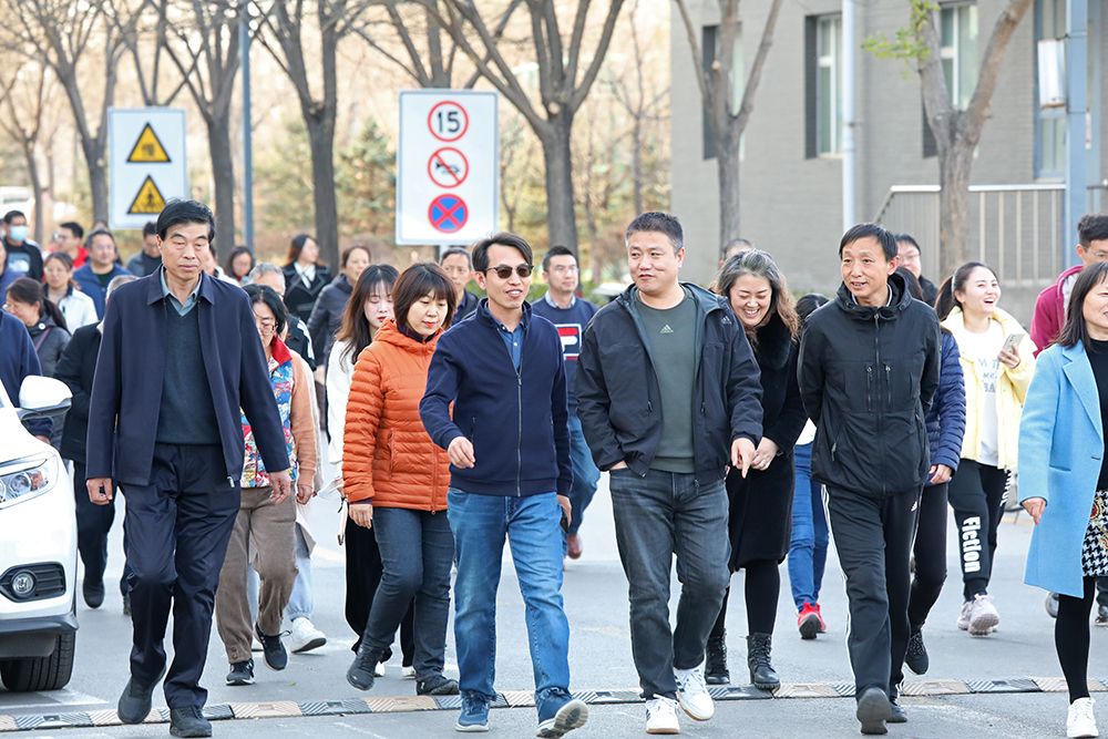 15:00时,学校领导和在校教职工在进行短暂的热身后,从西操场出发,沿着既定路线,健步行走在校园中。大家精神抖擞、步伐矫健,结伴而行、互相交流,在欢声笑语中欣赏着沿途中的校园风景,享受着健康运动带来的身心愉悦。