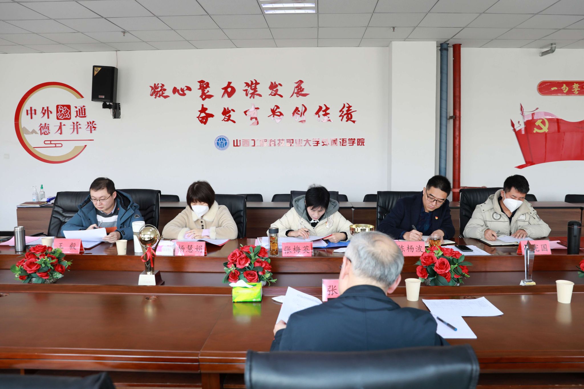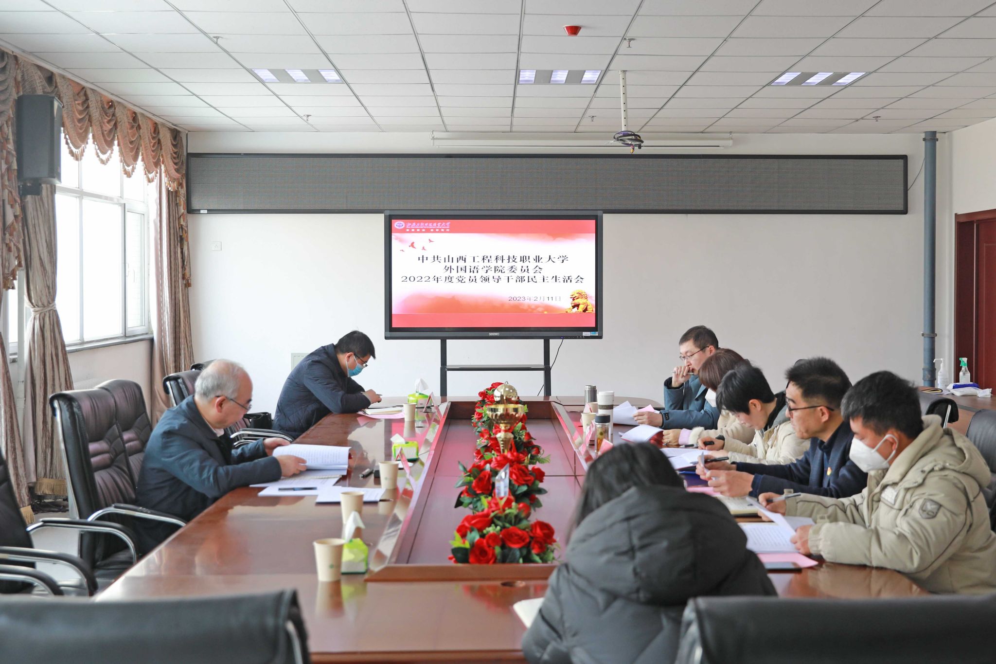 按照校党委安排部署,外国语学院2022年度党员领导干部民主生活会2月10日在行政2号楼323会议室召开。根据文件精神,本次民主生活会以“全面贯彻习近平新时代中国特色社会主义思想,深刻领悟‘两个确立’的决定性意义,增强‘四个意识’、坚定‘四个自信’、做到‘两个维护’,团结带领党员干部群众以奋发有为的精神贯彻落实党的二十大作出的重大决策部署”为主题。校党委书记张主社到会指导,外国语学院党委第一负责人张梅英主持会议。
