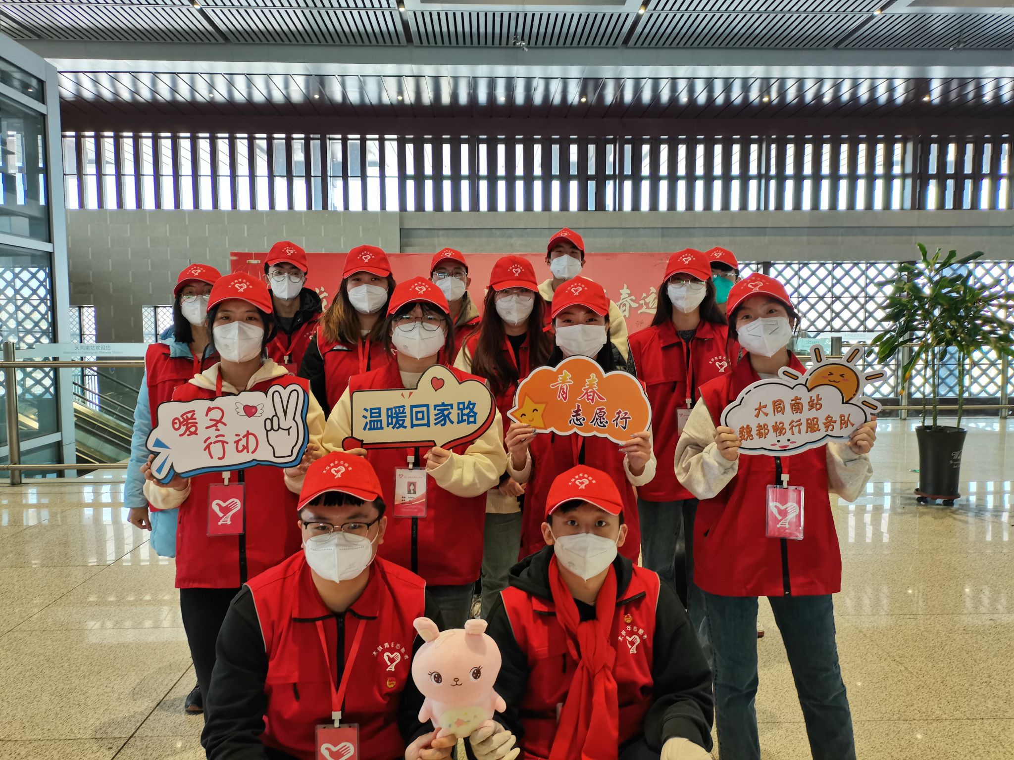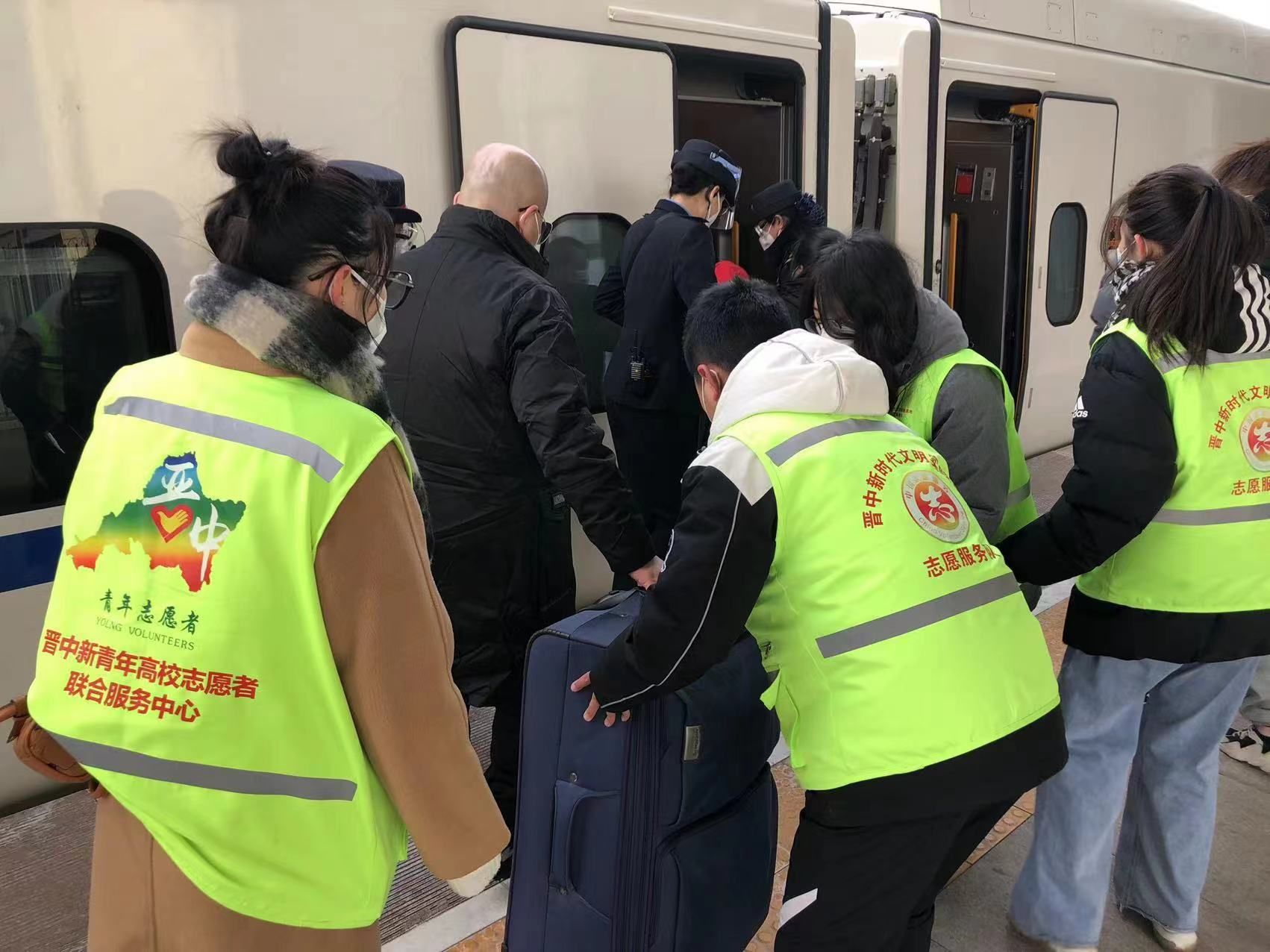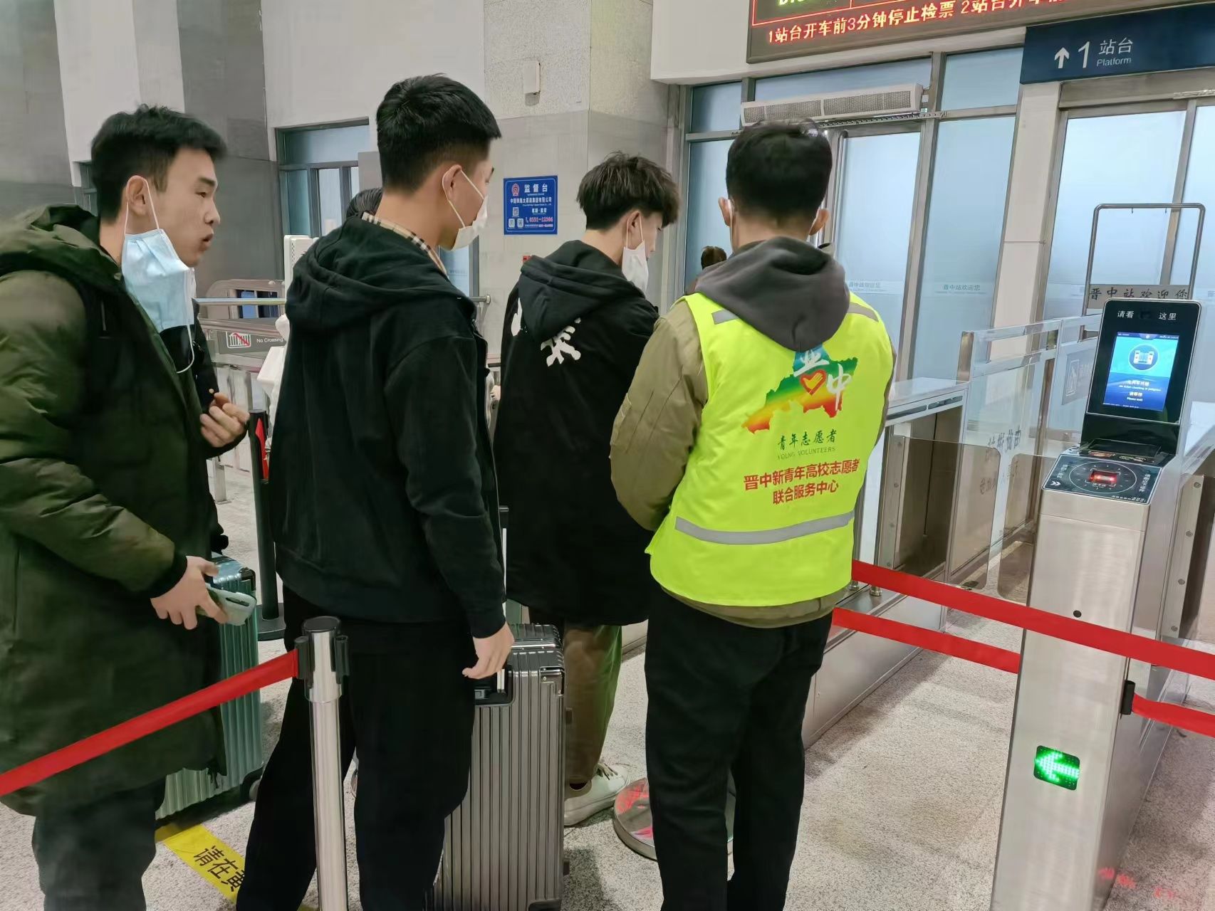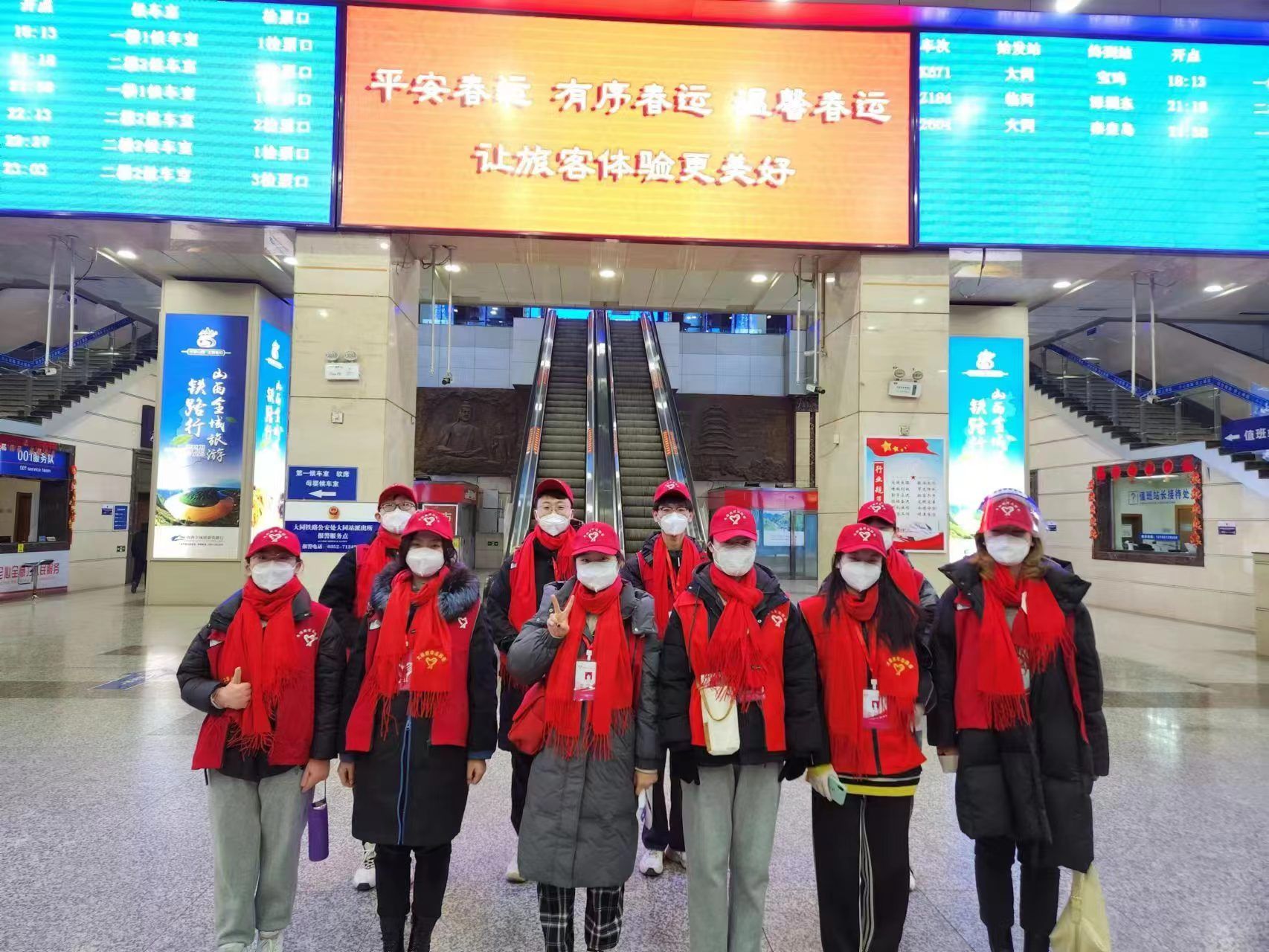 我校共15名大学生志愿者通过共青团山西省委综合考察与培训,分三批次于1月7日-2月15日到太原站、太原南站、大同站、大同南站等春运场开展为期一个月的志愿服务。同时34名志愿者参与共青团晋中市委组织开展的春运志愿服务”志愿服务活动,于1月7日-1月17日在晋中高铁站、榆次区火车站配合工作人员开展春运志愿服务。