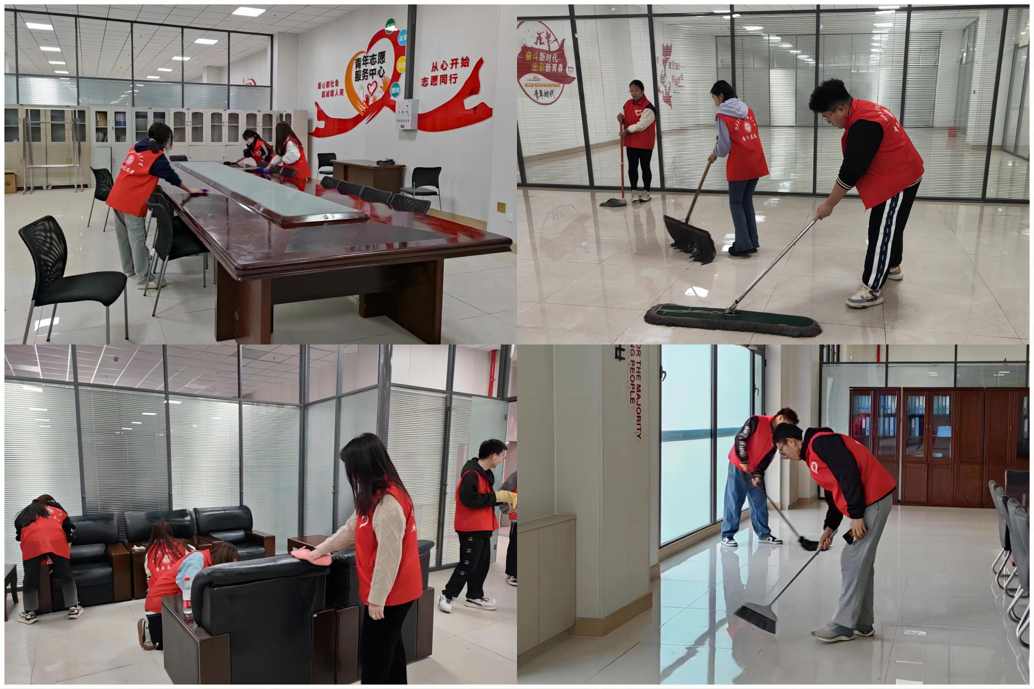 我校志愿者八十余人对2-3号、14号学生活动中心所有团属区域活动室进行了认真整理清扫工作,同学们分工明确,干劲十足,用自身行动诠释甘于奉献的雷锋精神, 为营造干净、整洁、优美的校园环境做出应有贡献,在校园中形成“人人争做雷锋”的良好氛围。