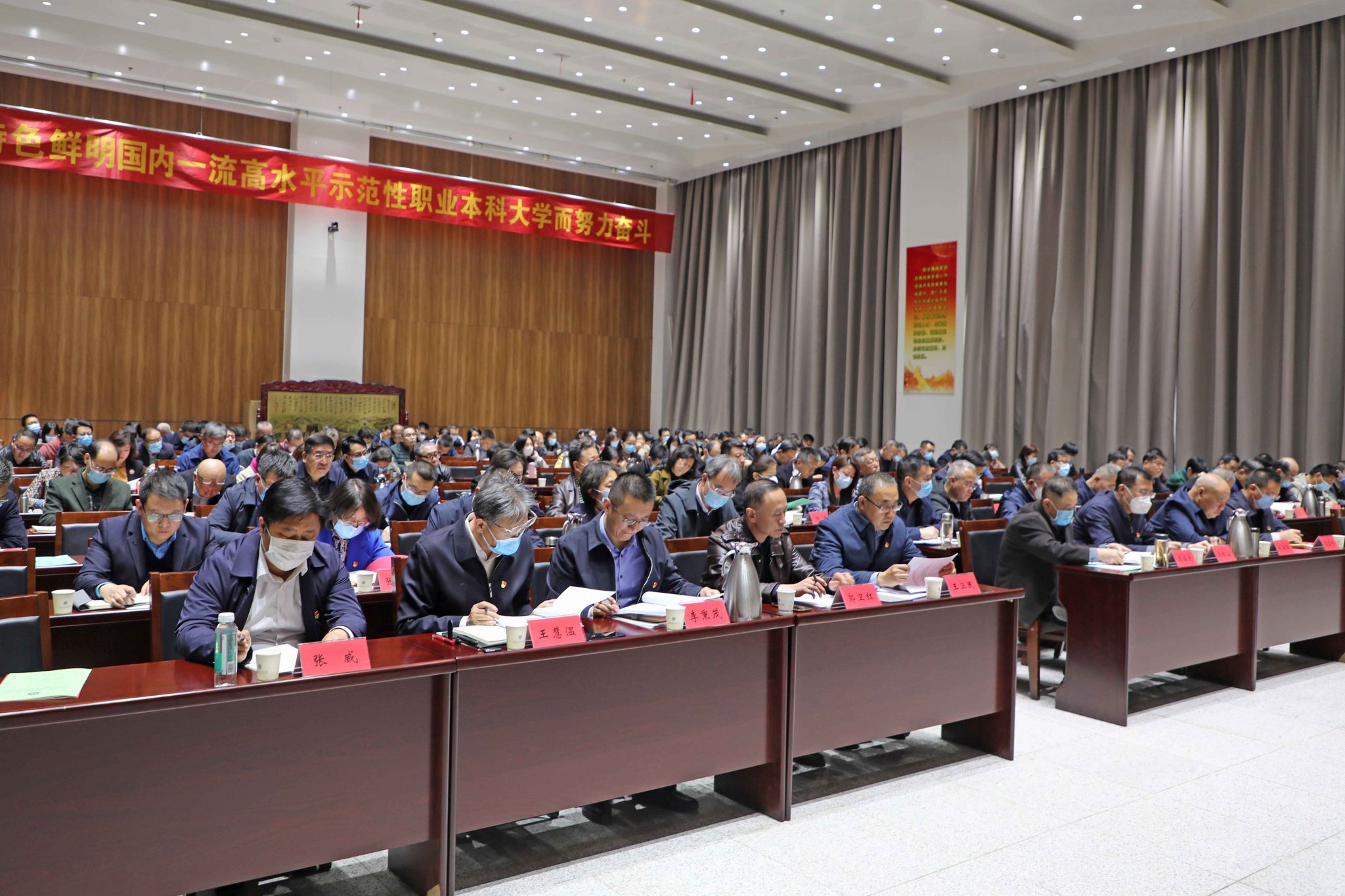 为深入贯彻落实党的二十大精神和全国两会精神,深入贯彻落实二十届中央纪委二次全会精神和省纪委十二届三次全会精神,深入贯彻落实教育部党组、省委教育工委、省教育厅党组全面从严治党工作会议精神,回顾总结学校全面从严治党工作,研判当前形势,安排部署2023年工作任务,3月15日,我校2023年全面从严治党暨党风廉政建设、意识形态、安全稳定工作会议在文华校区行政1号楼一层报告厅召开。学校领导出席会议,各部门、各单位负责人,各二级学院党政负责人及附属学校党政负责人参加。