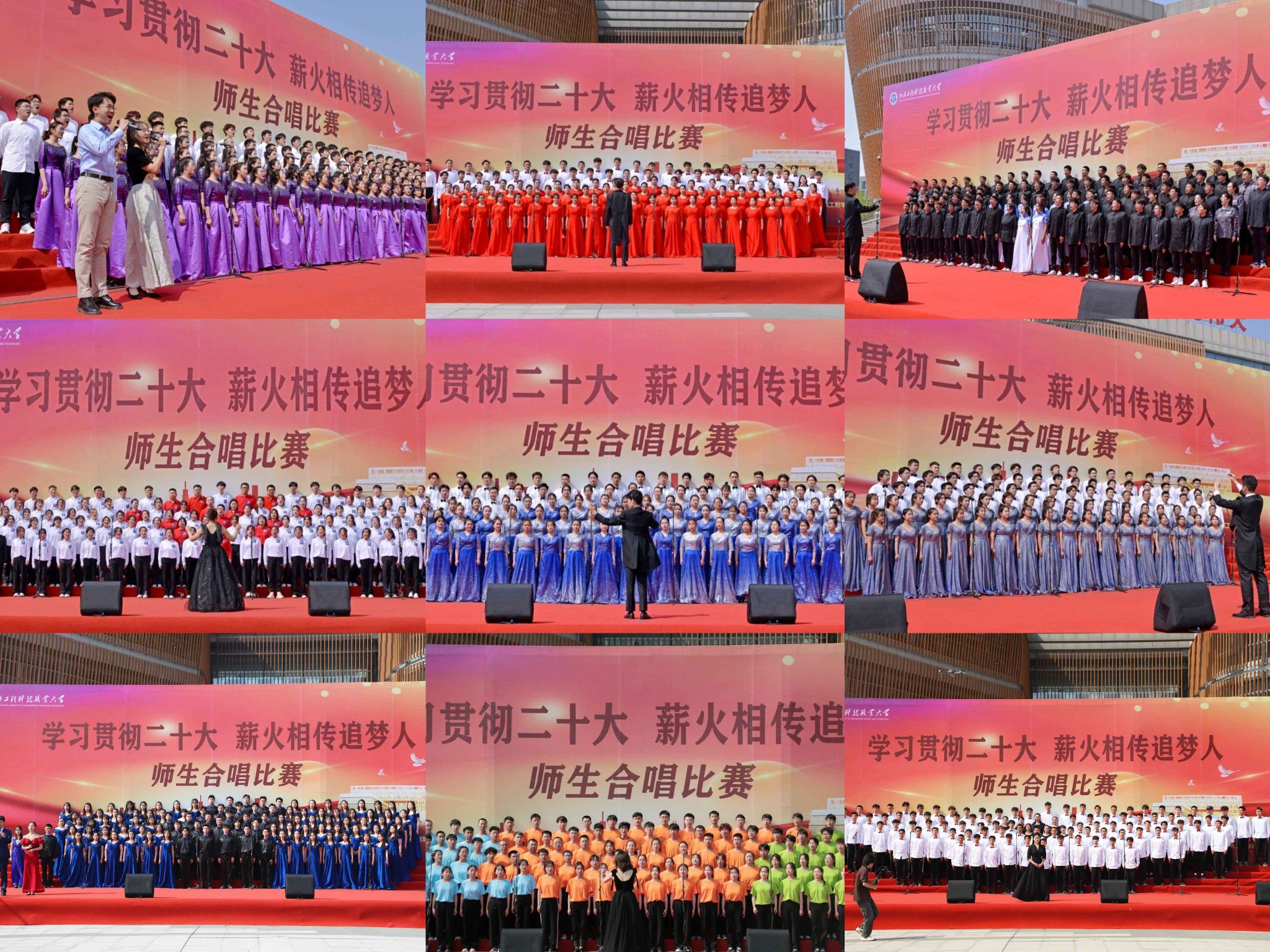 来自全校各二级学院的17支代表队参赛有序、服装整齐、精神饱满、歌声嘹亮、激情昂扬。各代表队创意新颖,异彩纷呈,现场掌声不断。《中国军魂》《走向复兴》《在灿烂阳光下》《我爱你中国》《祖国不会忘记》等节目依次登场,整场比赛高潮不断,音乐舞蹈学院作为非参赛队伍亲情演唱《传奇》为本次合唱比赛助兴。各代表队或高亢激昂,或饱满抒情,或温柔婉约,用一首首经典歌曲表达了对党的和祖国的无限热爱;抒发了“永远跟党走 奋进新征程”的满腔豪情;展现了新时代工科大青年朝气蓬勃的精神风貌。