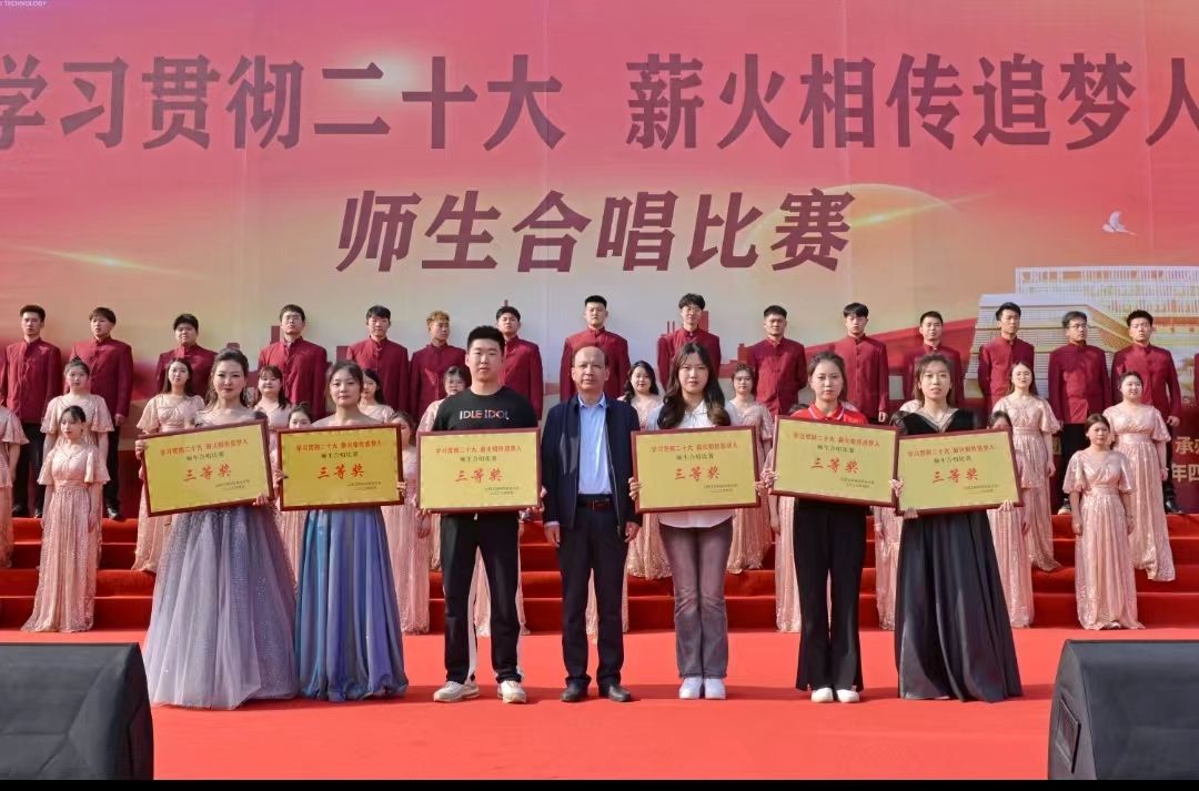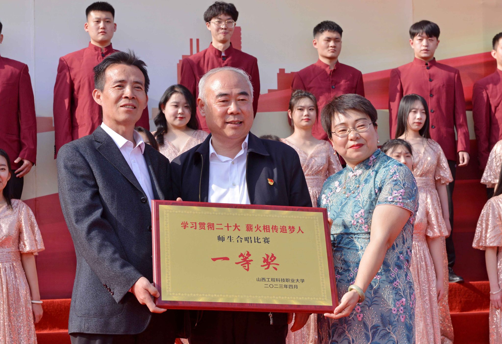 以青春之名,唱响青春之歌。为深入学习贯彻落实党的二十大精神,扎实开展学习贯彻习近平新时代中国特色社会主义思想主题教育,丰富校园文化生活,彰显我校广大师生员工团结奋进、积极向上的精神风范,4月26日,由校团委、校工会主办,建筑工程学院承办的山西工程科技职业大学“学习贯彻二十大,薪火相传追梦人”合唱比赛在文华校区技能广场拉开帷幕。全体校领导、各职能部门、各二级学院负责人到场与全体学生一起观看活动。党委副书记乔忠华为比赛致辞。