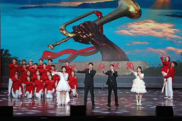 在《致吾辈》的嘹亮乐声中,本场文艺演出拉开帷幕。演出由“时代在召唤,吾辈当自强”“活力工科大,师徒展风采”“争做奋斗者,薪火永相传”三大篇章共11个节目组成。美声演唱《领航》与舞蹈表演《强军出击》,奏响新时代新青年奋发有为、砥砺前行的激昂青春;大合唱《我有一个装满星星的口袋》与歌伴舞《奉献》《最亮的火焰》《大国工匠》,深情演绎工科大师生投身“强国有我、技能报国”的工科大故事;《我爱你中国》的悠扬乐声激起在场师生对伟大祖国的热爱之情,歌伴舞《有我》与音诗画《青春宣言》更展现出工科大校园的青春活力。在全体演职人员与在场观众合唱校歌《远航》的歌声中,开幕式文艺演出落下帷幕。