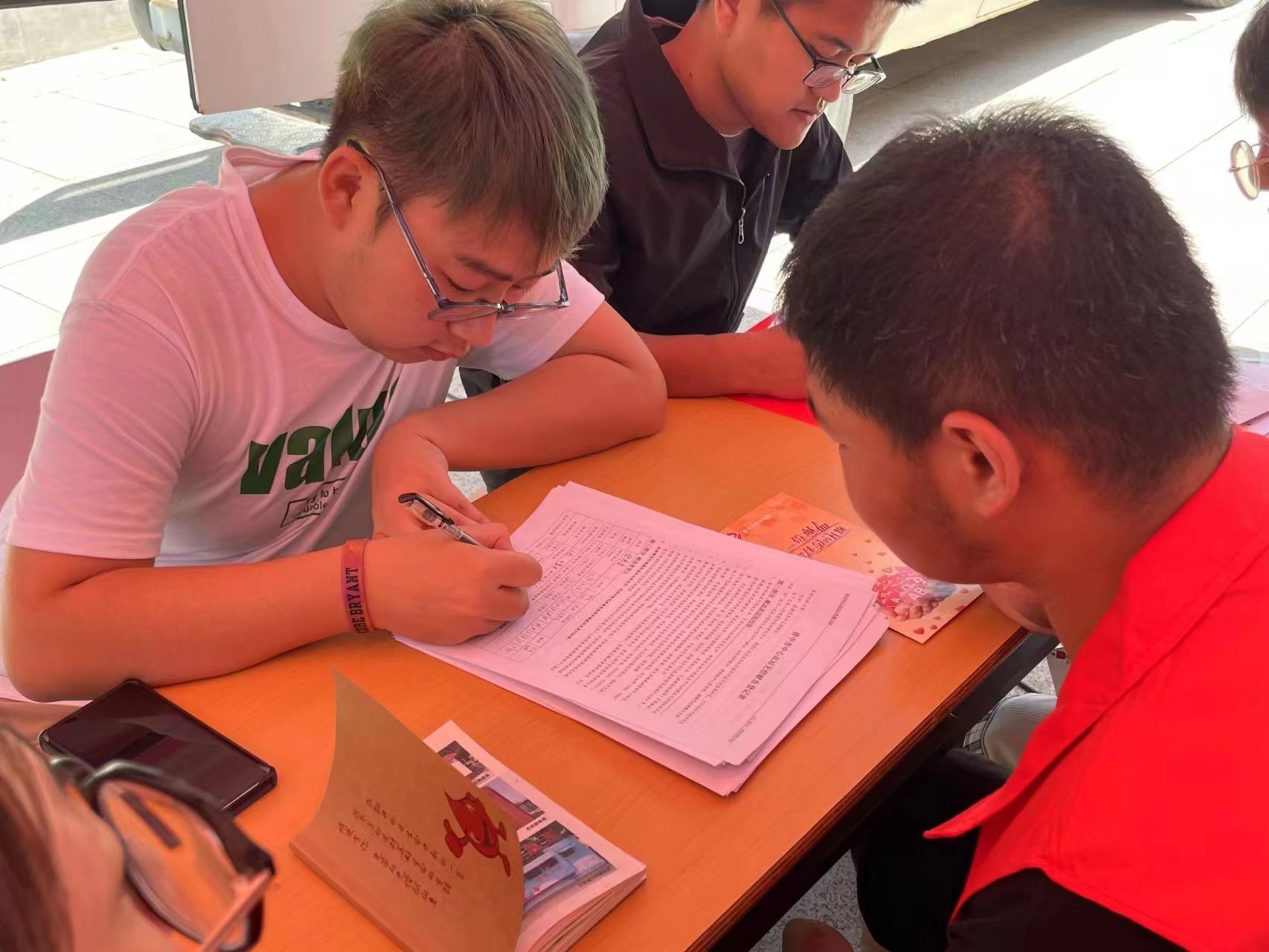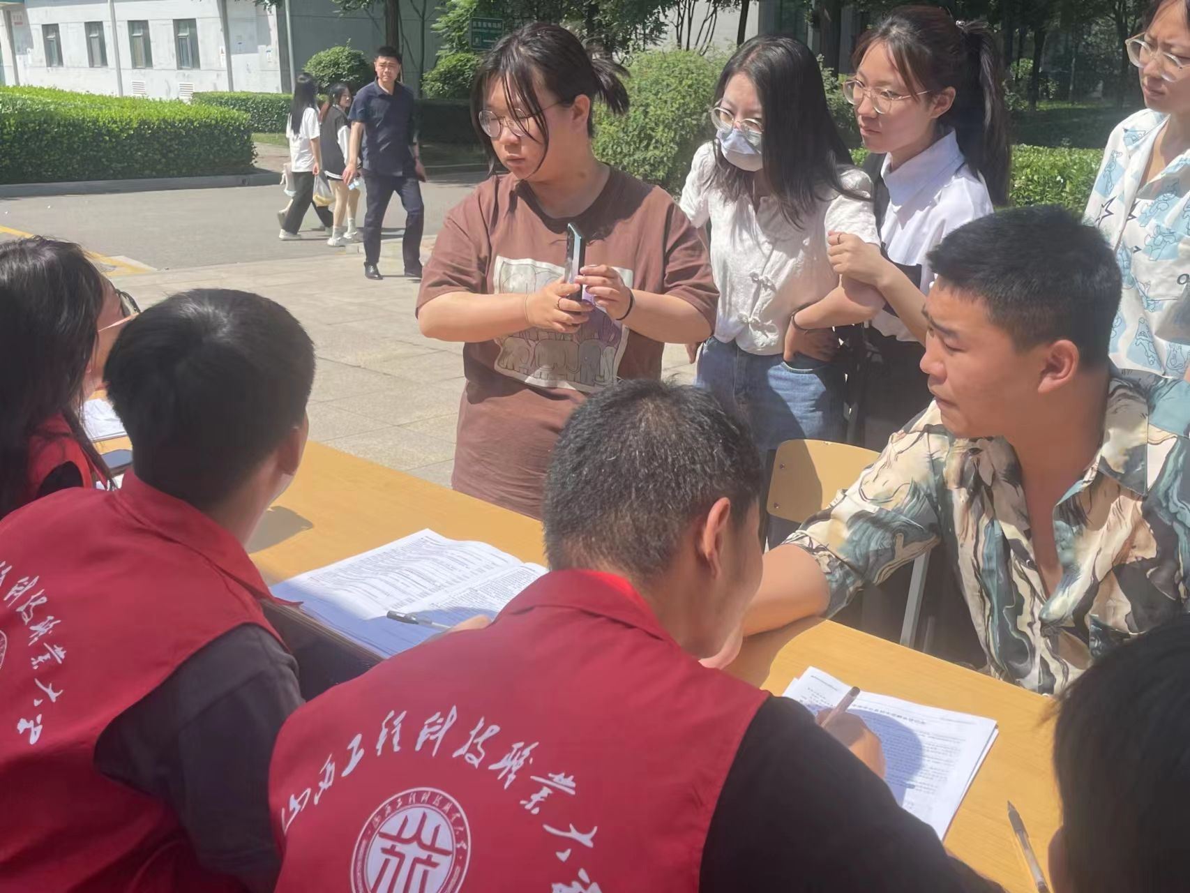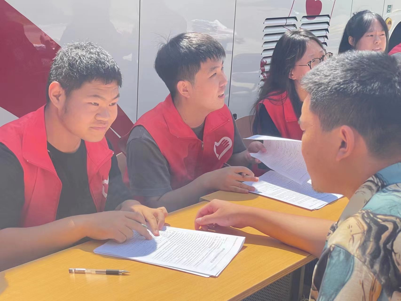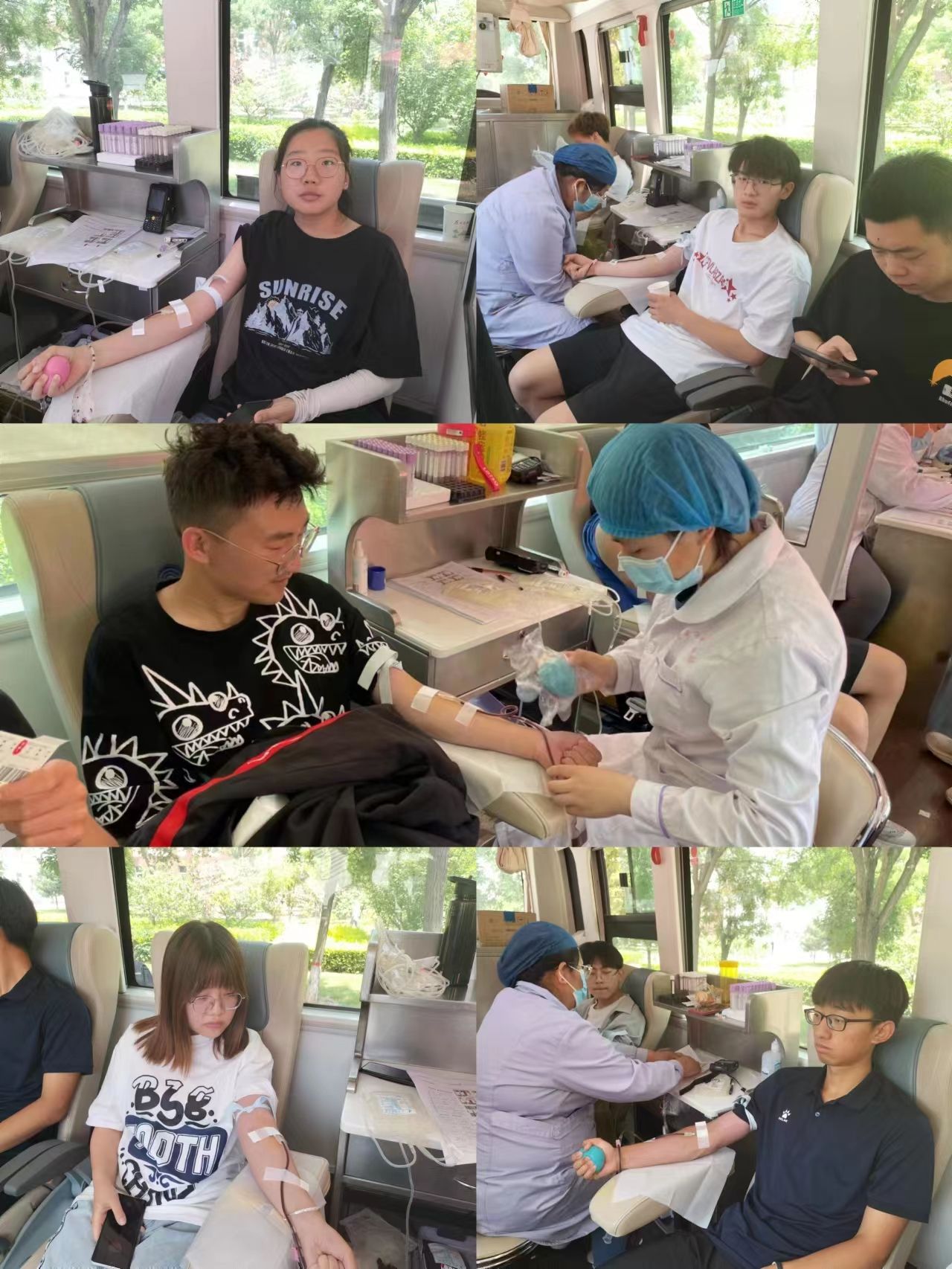 烈日炎炎下,献血车前排满了师生,医护人员细心询问献血者身体情况、耐心叮嘱相关注意事项。参加无偿献血的学生大多是第一次献血,他们在医务人员的指引下积极进行登记信息、测量血压、静脉采血检验。活动现场井然有序,献血师生依次登上献血车,挽起袖管,献出自己的一份爱心。整个输血过程暖意满满,大家脸上流露出勇敢与乐观的笑容,一张张稚嫩且坚定的面孔彰显了当代青年的热血担当。