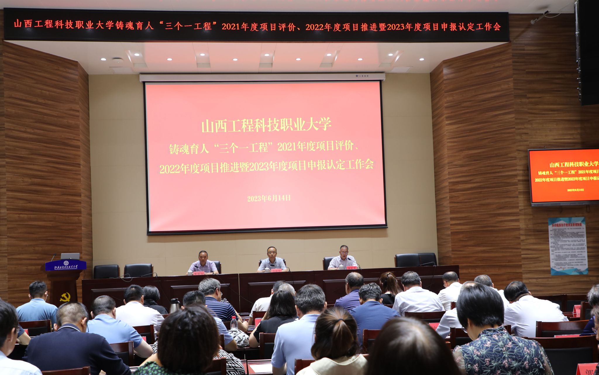 为深入推进职业教育思想政治工作改革创新,积极构建三全育人十大体系,推动形成具有我校特色的职业教育铸魂育人氛围,进一步提升我校铸魂育人“三个一工程”质量水平,6月14日,在行政1号楼一层报告厅召开职业教育铸魂育人“三个一工程”2021年度项目评价、2022年度项目推进暨2023年度项目申报认定工作会。校党委副书记乔忠华出席,“三个一工程”建设领导组项目办成员、各二级学院党委第一负责人、各项目负责人参加。会议由“三个一工程”建设领导组项目办成员、宣传部负责人郭文彦主持。