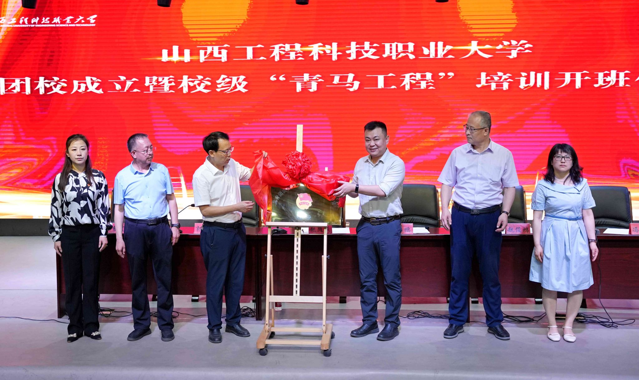 随后,赵随民与吴鹏共同为团校揭牌。宣传(统战部)负责人郭文彦宣读了《关于同意成立山西工程科技职业大学团校的批复》;校团委蔺琪介绍了本次校级“青马工程”培训方案;青马学员代表王琳懿表态发言。
