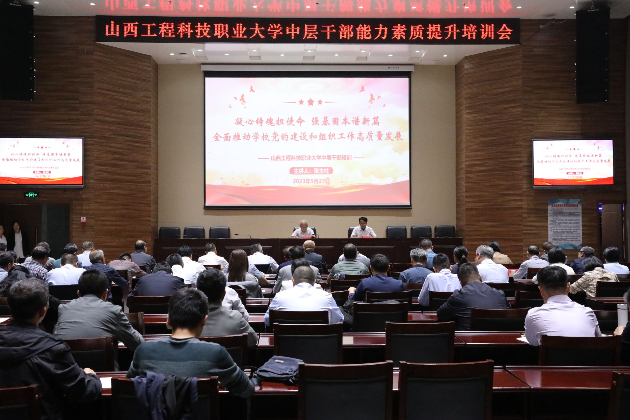 9月27日,我校在行政一号楼报告厅举办中层干部能力素质提升培训会。校党委书记张主社以“凝心铸魂担使命,强基固本谱新篇,全面推动学校党的建设和组织工作高质量发展”为主题,对我校全体中层干部进行专题培训。校党委副书记赵随民主持会议。