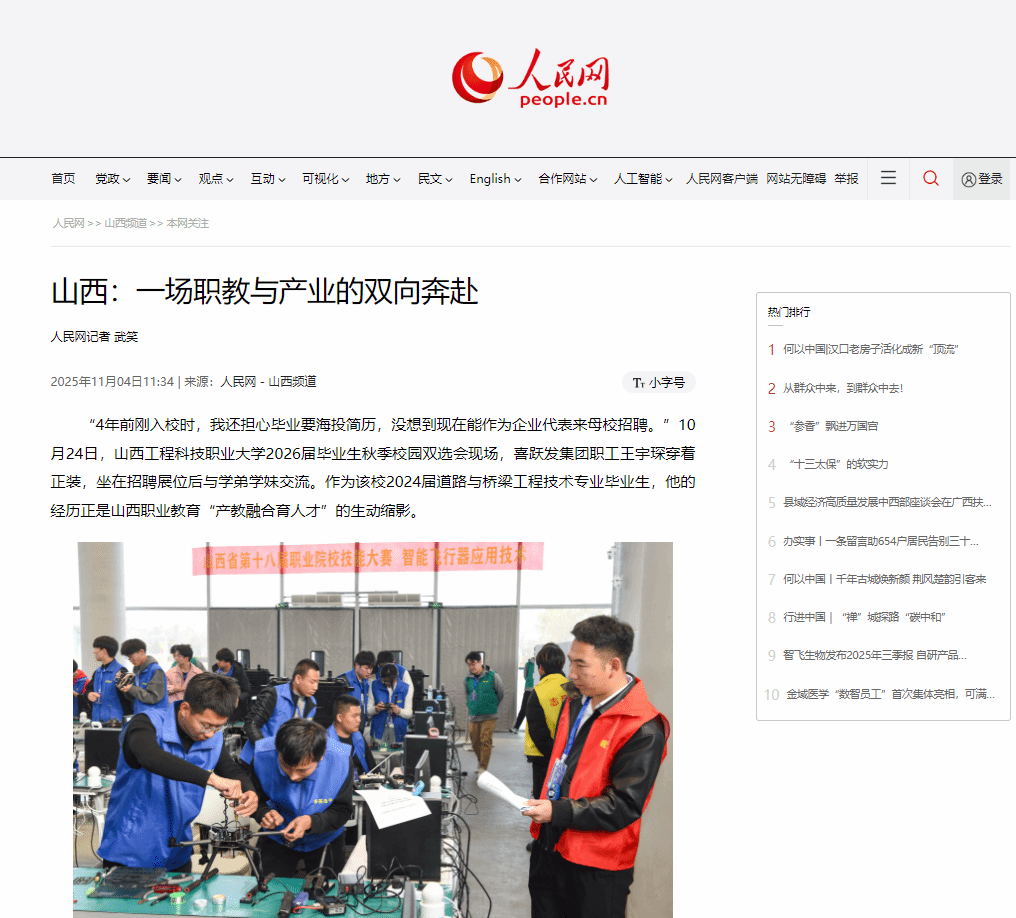 在山西转型发展的版图上,职业教育不是旁观者,而是深度的参与者与赋能者。当课堂跟着产业转、技能贴着需求练、就业随着合作稳,这场“职教与产业”“人才与岗位”的双向奔赴,正勾勒出人才多元发展的新生态。