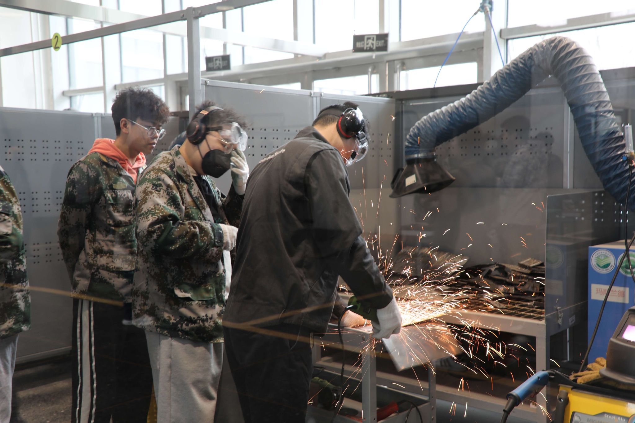 山西工程科技职业大学汽车工程学院师生在实训室进行汽车焊接实训课。解洁 摄