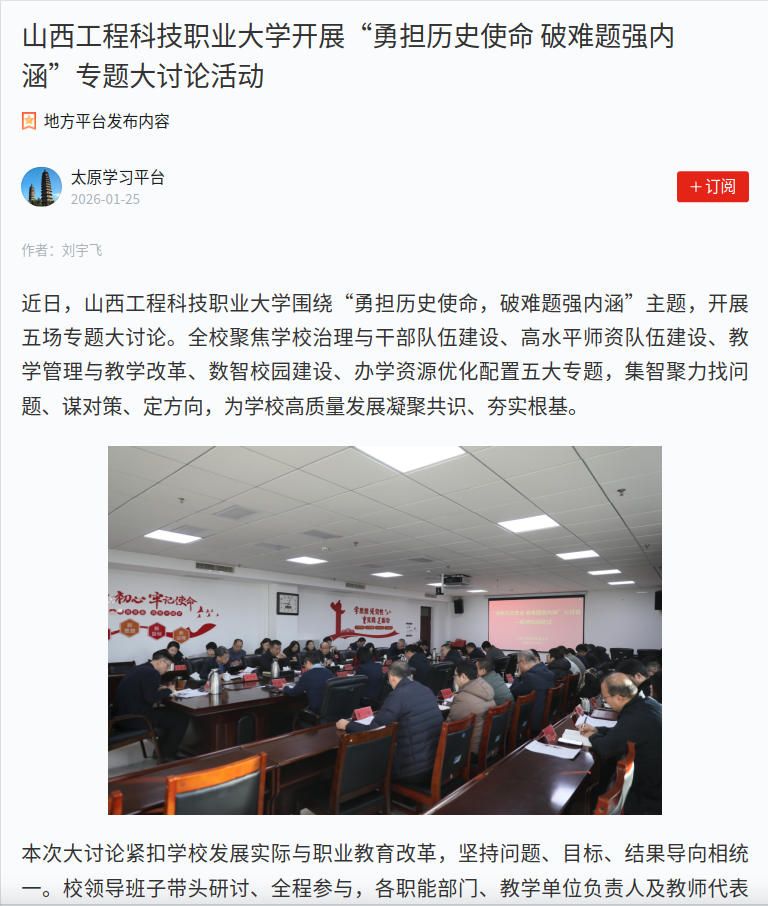 山西工程科技职业大学开展“勇担历史使命 破难题强内涵”专题大讨论活动