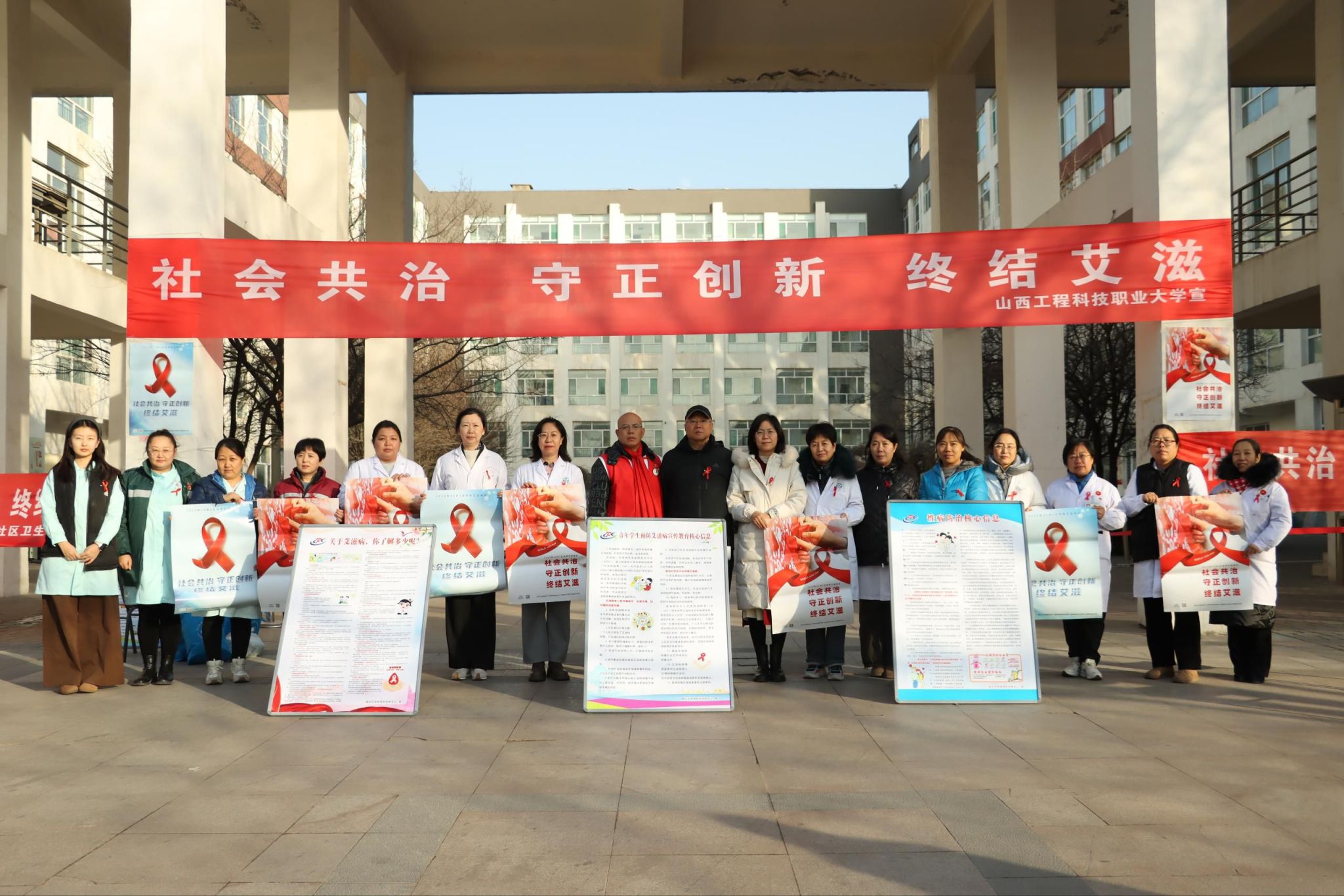 12月1日,在第38个世界艾滋病日之际,我校卫生健康服务中心联合榆次区疾控中心、北部新城高校社区卫生服务中心,在我校文华校区6号公寓楼前举办以“社会共治、守正创新、终结艾滋”为主题的“世界艾滋病日”主题宣传活动。学校宣传部、后勤保障部和榆次区疾控中心负责人参加。