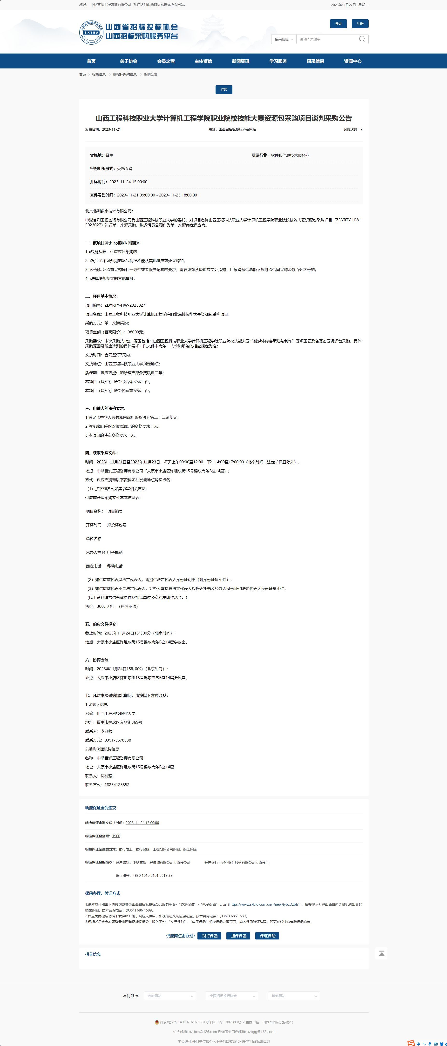 山西工程科技职业大学计算机工程学院职业院校技能大赛资源包采购项目谈判采购公告