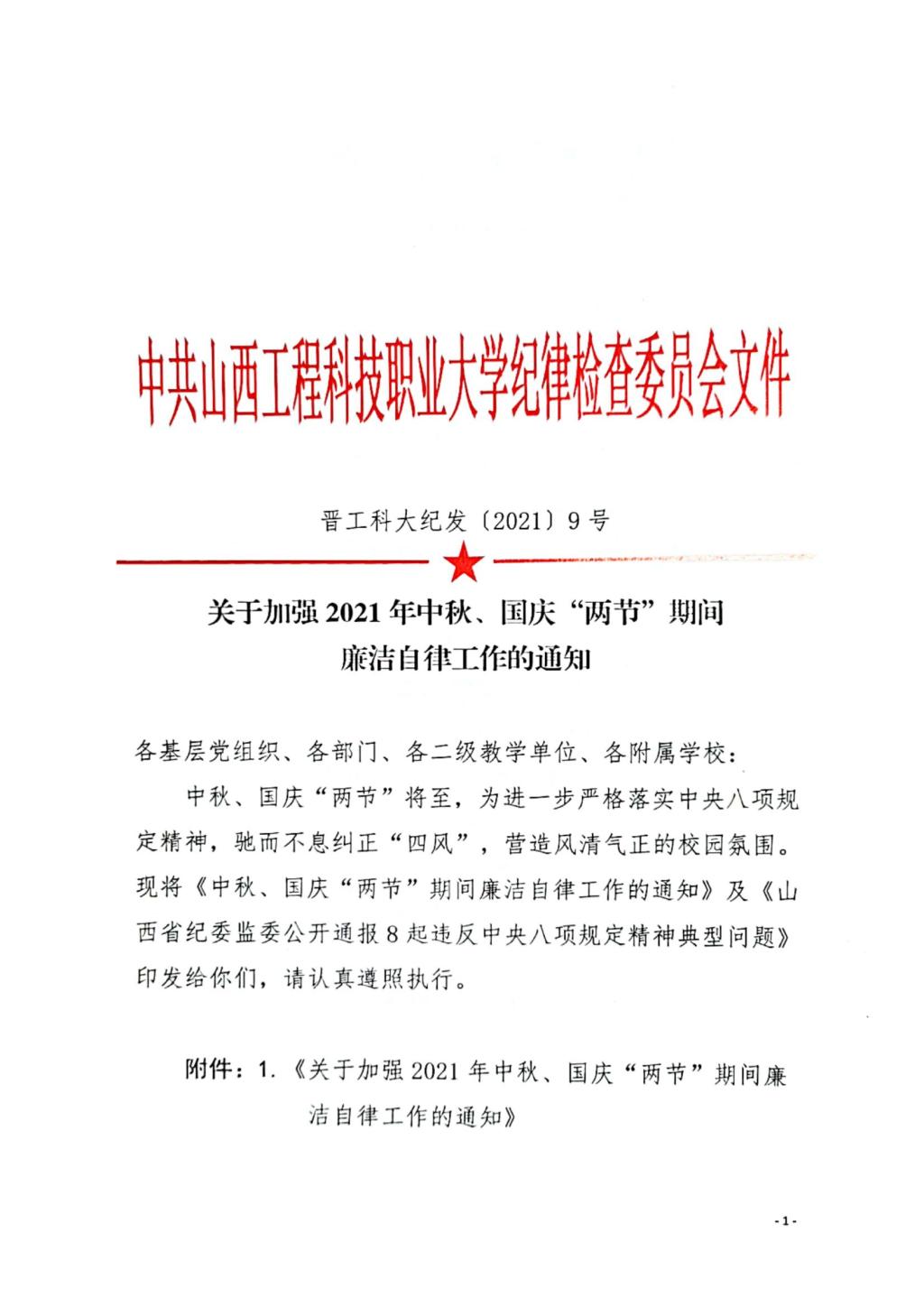 附件1:关于加强2021年中秋、国庆“两节”期间廉洁自律工作的通知.docx