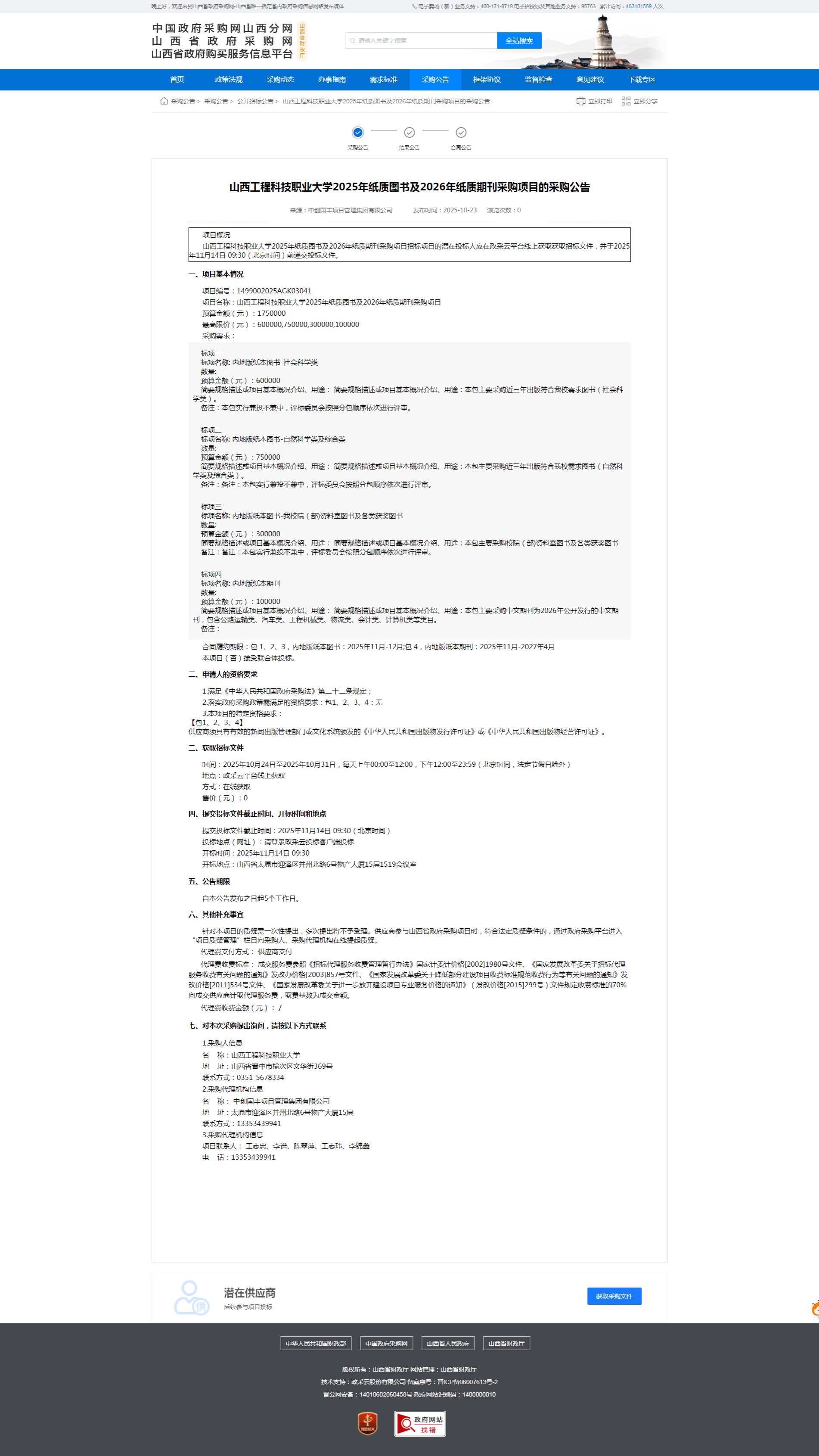 山西工程科技职业大学2025年纸质图书及2026年纸质期刊采购项目的采购公告
