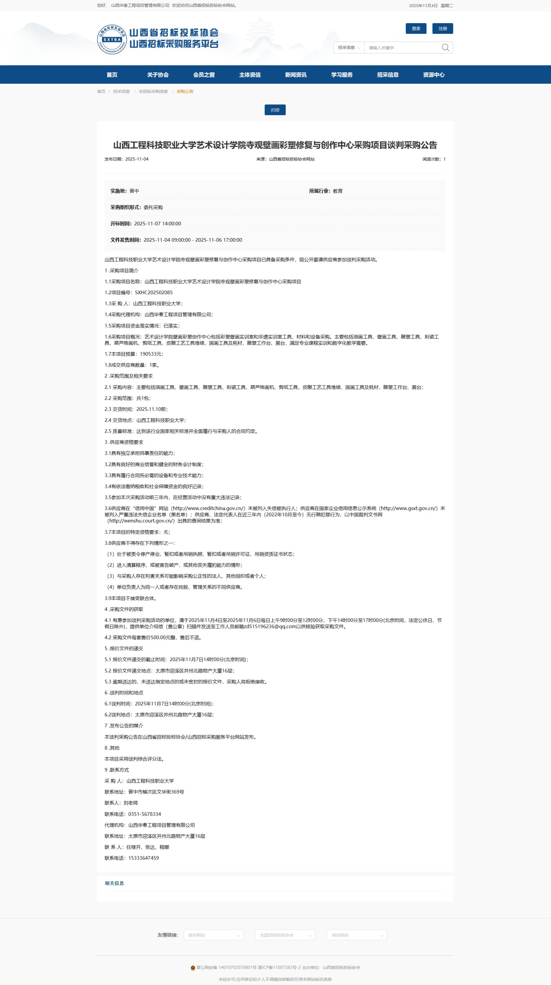 山西工程科技职业大学艺术设计学院寺观壁画彩塑修复与创作中心采购项目谈判采购公告