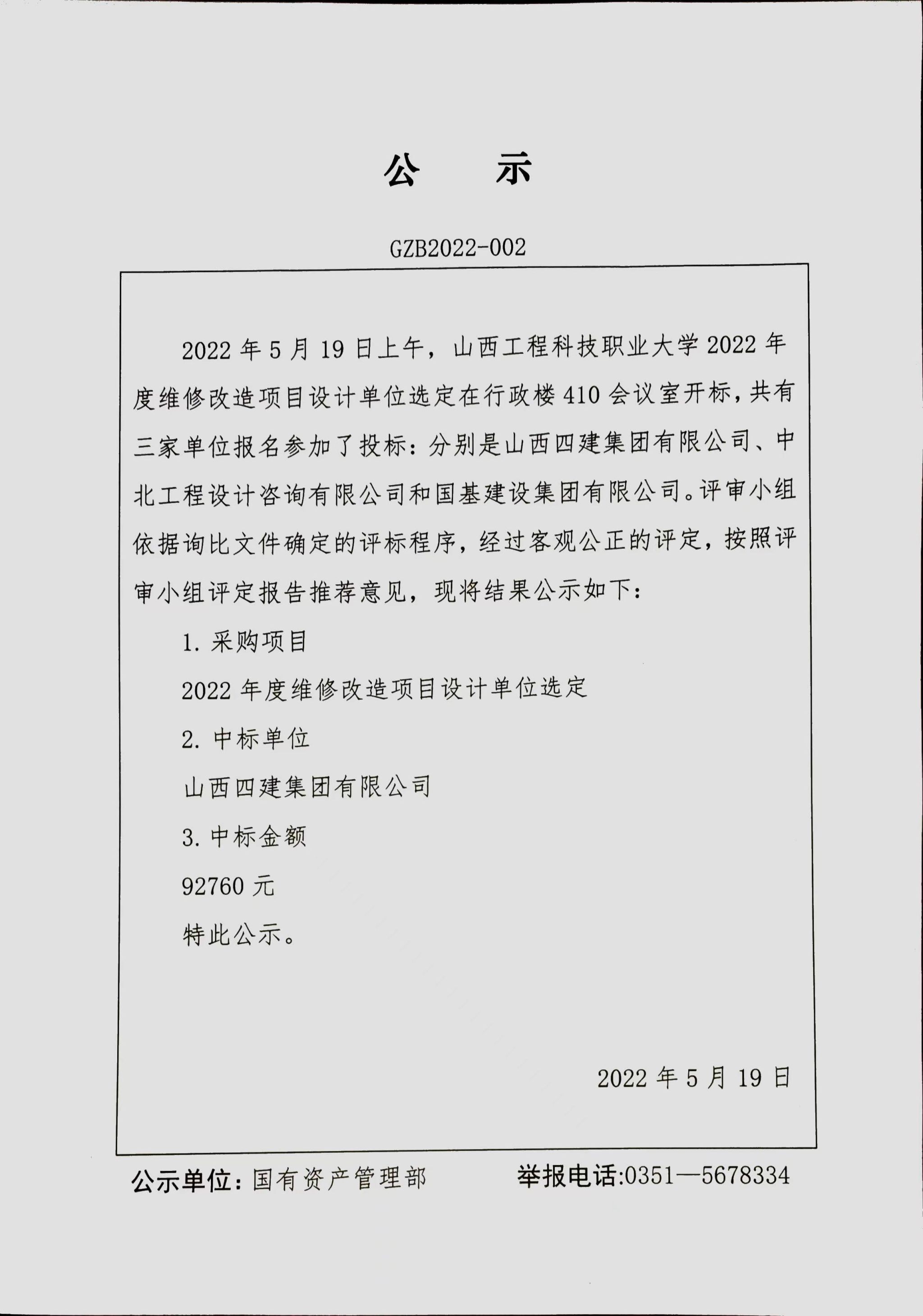 2022年度维修改造项目设计单位询比成交公告