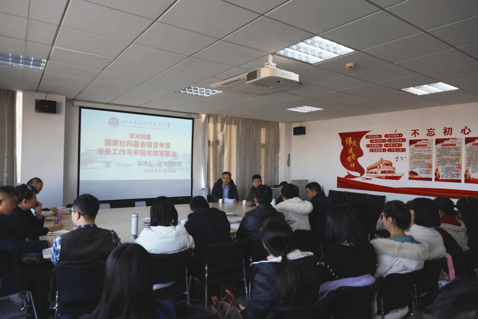 2023年11月28日下午,我校科技研发与成果转化中心联合建筑设计学院举办了题为“国家社科基金项目申报准备工作与申报书填写要点”的科研专题讲座。此次讲座特邀山西大学卫才华教授主讲,围绕国家社科基金项目的申报准备与申请书填写要点,为我校教师尤其是新引进高层次人才做好国家级项目申报工作进行了辅导。讲座由科技研发与成果转化中心主任杨宏伟教授和建筑设计学院副院长孙英芳老师主持,建筑设计学院、文法学院、艺术设计学院、音乐舞蹈学院等多个学院部分教师参加了讲座。