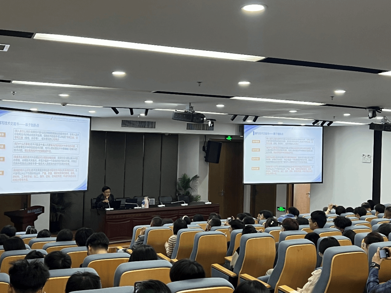 此次讲座,做为我校强化知识产权能力提升、加强科技成果转化的系列活动之一,力求在我校形成人人关注知识产权、人人参与知识产权工作、人人努力提升技术研发能力的良好氛围。