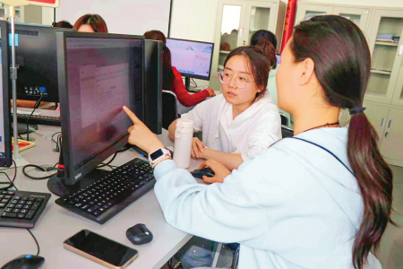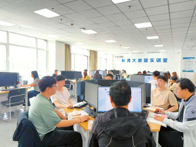 “我负责数据采集,用Python爬取企业的销售明细和财务报表数据,刚才发现有几个字段缺失,得标注出来!”课堂上,小组里的一位男生在键盘上快速敲击。